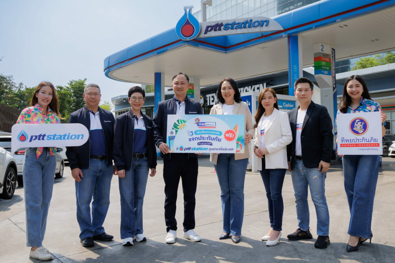 นายสุภาพ ประดับการ รองกรรมการผู้จัดการใหญ่ บริษัท ทิพยประกันภัย จำกัด (มหาชน) พร้อมด้วย นายพิมาน พูลศรี รองประธานเจ้าหน้าที่บริหารด้านธุรกิจค้าปลีกน้ำมัน บริษัท ปตท.น้ำมันและการค้าปลีก จำกัด (มหาชน) หรือ OR ร่วมเติมเต็มความห่วงใยในการเดินทางช่วงเทศกาลสงกรานต์ ปี 2567 ให้กับลูกค้า พีทีที สเตชั่น เมื่อเติมน้ำมันชนิดใดก็ได้ ตั้งแต่ 100 บาทขึ้นไป/ใบเสร็จ