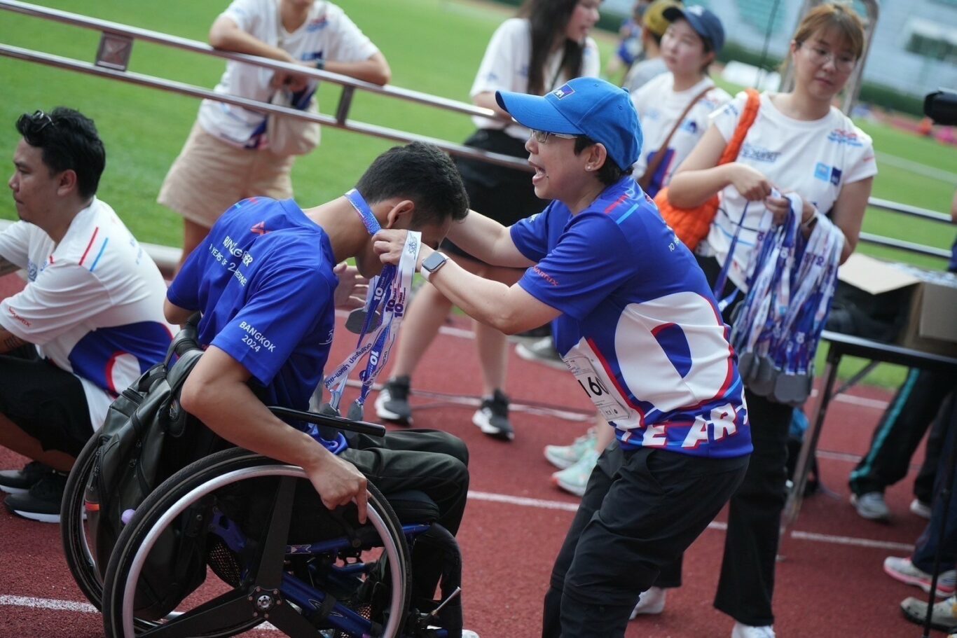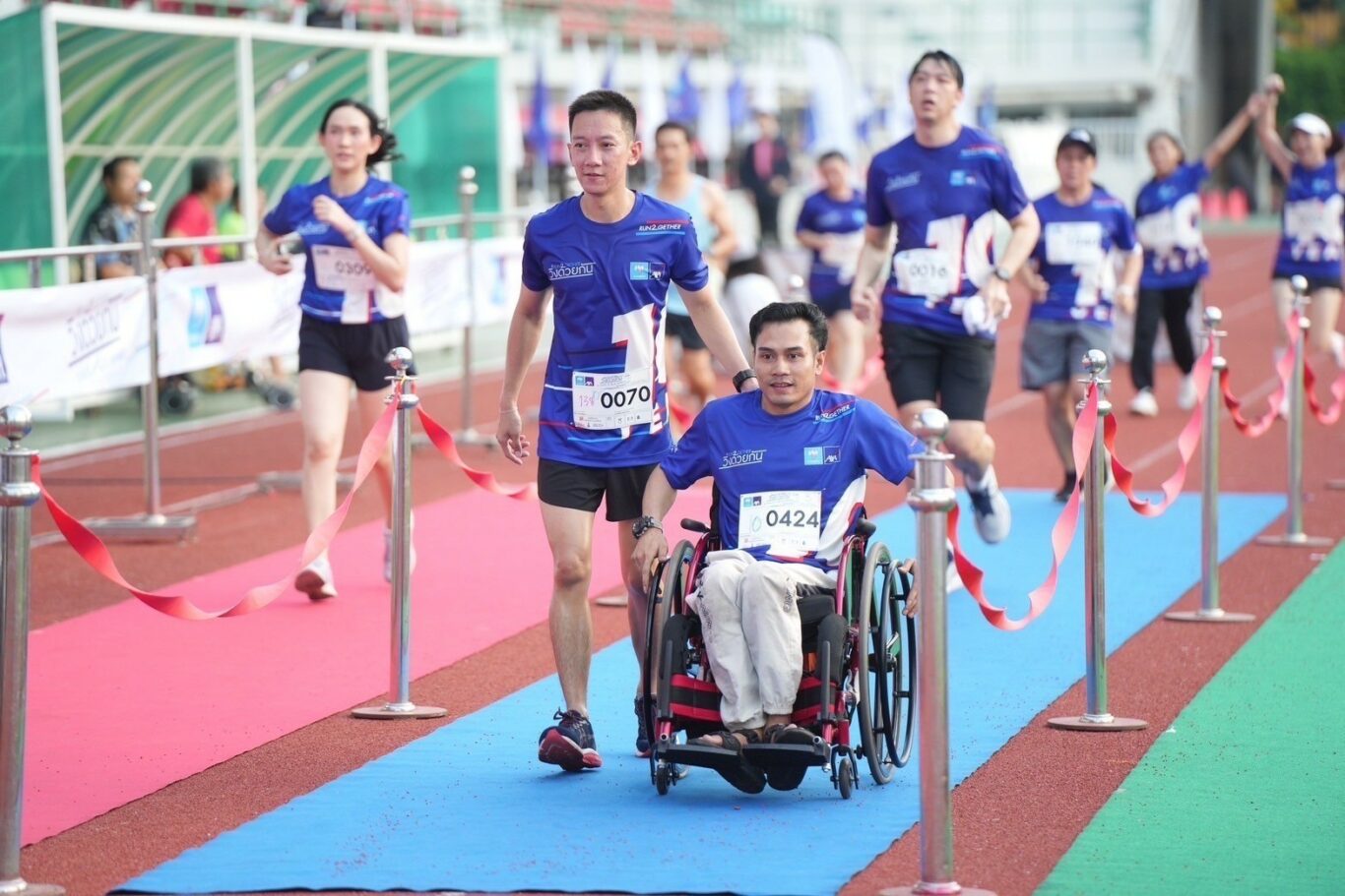 งาน “วิ่งด้วยกัน RUN2GETHER 10 YEARS of 2GETHERNESS” กรุงเทพมหานคร ประจำปี 2024 จัดขึ้นในวันที่ 7 เมษายน 2567 ณ สนามกีฬาแห่งชาติ สนามศุภชลาศัย และถนนโดยรอบ เป็นงานวิ่งที่ตั้งใจจัดให้คนพิการ และไม่พิการ วิ่งด้วยกัน โดยคนไม่พิการมีโอกาสเป็นไกด์รันเนอร์ คอยวิ่งเคียงข้าง เป็นเพื่อนวิ่งด้วยกันไปตลอดเส้นทาง โดยแบ่งระยะการวิ่งเป็น 3 ระยะทาง ได้แก่ 2 กิโลเมตร 6 กิโลเมตร และ 10 กิโลเมตร อีกทั้งในปีนี้ยังเลือกใช้วัสดุรีไซเคิล สำหรับการผลิตเสื้อวิ่ง และเหรียญที่ระลึก ซึ่งได้รับความสนใจจากไกด์รันเนอร์อาสาสมัครทั้งหน้าเก่า และหน้าใหม่ที่มาร่วมบรรยากาศพาคนพิการวิ่งเข้าเส้นชัยไปด้วยกัน มีจำนวนคนพิการ ไกด์รันเนอร์ และอาสาสมัครที่เข้าร่วมในกิจกรรมครั้งนี้กว่า 1,400 คน นักวิ่งทุกท่านจะได้วิ่งอยู่ท่ามกลางบรรยากาศของการอยู่ร่วมในสังคมเดียวกันของเพื่อนคนพิการ และไม่พิการ ทุกเพศทุกวัย ในบรรยากาศที่แสดงถึงมิตรภาพที่ดีที่ทุกคนมีให้แก่กัน เข้าใจกัน ช่วยเหลือกัน เป็นงานที่ไม่เน้นแข่งขัน แต่พากันเข้าสู่เป้าหมายแห่งความสำเร็จที่เส้นชัยพร้อมกัน ระหว่างทางวิ่งยังได้รับและส่งต่อกำลังใจให้กันและกัน เพื่อสร้างบรรยากาศที่อบอุ่น และน่าอยู่ในสังคม คนพิการได้แสดงออกถึงศักยภาพที่ไม่ได้มีน้อยกว่าเพื่อนไม่พิการที่วิ่งเคียงข้างกัน หรือเพื่อนที่ได้พบกันระหว่างเส้นทาง และทุกคนในงานยังได้สร้างมิตรภาพที่เหนือความแตกต่าง ให้ทุกคนในสังคมเปิดรับซึ่งกันและกัน