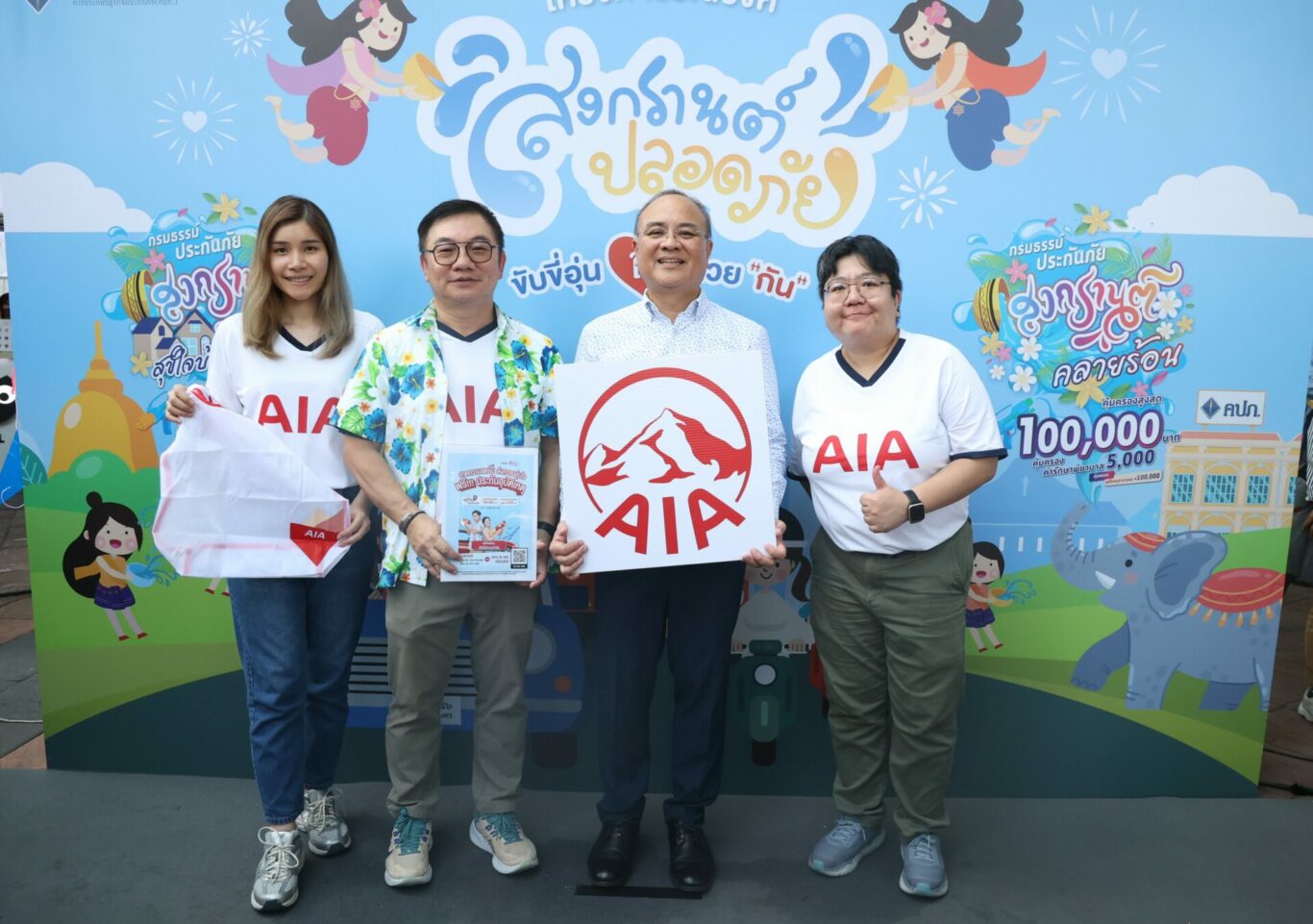 ในโอกาสนี้ เอไอเอ ยังได้ร่วมออกบูธเพื่อเชิญชวนประชาชนที่เดินทางบริเวณเกาะพหลโยธินที่สนใจลงทะเบียนรับสิทธิกรมธรรม์ประกันอุบัติเหตุฟรีกับแคมเปญ “กรมธรรม์ประกันภัยกลุ่มสงกรานต์ (ไมโครอินชัวรันส์)” โดยได้รับเกียรติจาก นายชูฉัตร ประมูลผล (ที่ 2 จากขวา) เลขาธิการสำนักงาน คปภ. ให้เกียรติเป็นประธานเปิดงาน ณ เกาะพหลโยธิน อนุสาวรีย์ชยสมรภูมิ เมื่อวันที่ 4 เมษายน ที่ผ่านมา