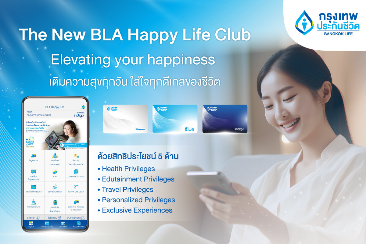 กรุงเทพประกันชีวิต ตอกย้ำ “The Most Caring Insurance Brand” ตอบแทนความไว้วางใจของลูกค้าด้วยความใส่ใจ พัฒนาสิทธิประโยชน์ใหม่ 5 ด้านทั้งไลฟ์สไตล์และสุขภาพ เพื่อยกระดับความสุขพร้อมส่งมอบแก่ลูกค้าสมาชิกบีแอลเอ แฮปปี้ไลฟ์ คลับ (BLA Happy Life Club) พร้อมรับสิทธิประโยชน์ง่ายๆ ผ่าน BLA Happy Life Application