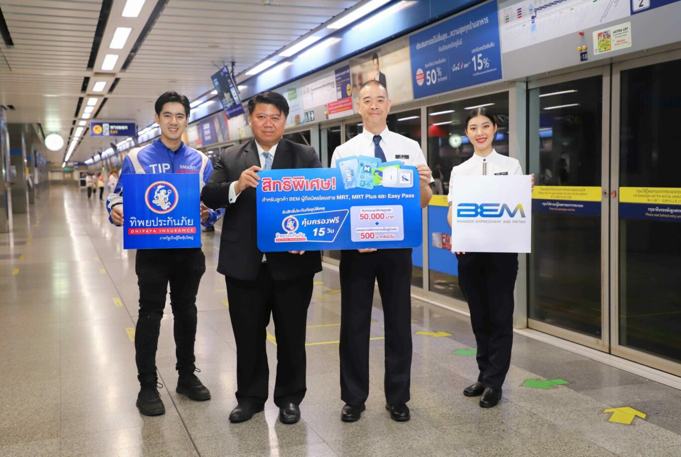 บริษัท ทิพยประกันภัย จำกัด (มหาชน) ร่วมกับ นายอัลวิน จี รองกรรมการผู้จัดการบริหาร นายสุรสิทธิ์ อรุณรัตนากุล ผู้อำนวยการฝ่ายกฎหมายและกำกับการปฏิบัติงาน บริษัท ทางด่วนและรถไฟฟ้ากรุงเทพ จำกัด (มหาชน) หรือ BEM มอบของขวัญช่วงวันแรงงานแห่งชาติ เพื่อแทนคำขอบคุณและส่งความห่วงใย สำหรับผู้ถือบัตรโดยสาร MRT/MRT PLUS และ EASY PASS