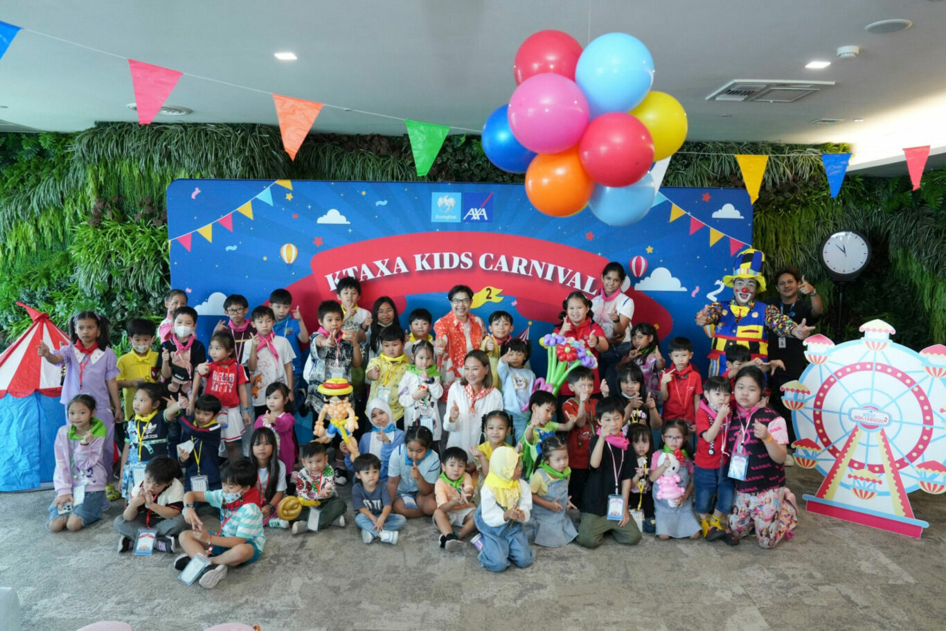 บมจ.กรุงไทย-แอกซ่า ประกันชีวิต นำโดย นางสาวบุปผาวดี โอวรารินท์ ประธานเจ้าหน้าที่บริหาร ฝ่ายทรัพยากรบุคคลและภาพลักษณ์องค์กรและการสื่อสารองค์กร (แถวหลัง คนกลาง) เปิดบ้านต้อนรับเด็กๆ เข้าร่วมกิจกรรมแฟมิลี่เดย์ “KTAXA Kids Carnival ปี 2 พาน้อง ๆ ไปท่องดินแดนมหาสนุก ปลุกจินตนาการ”