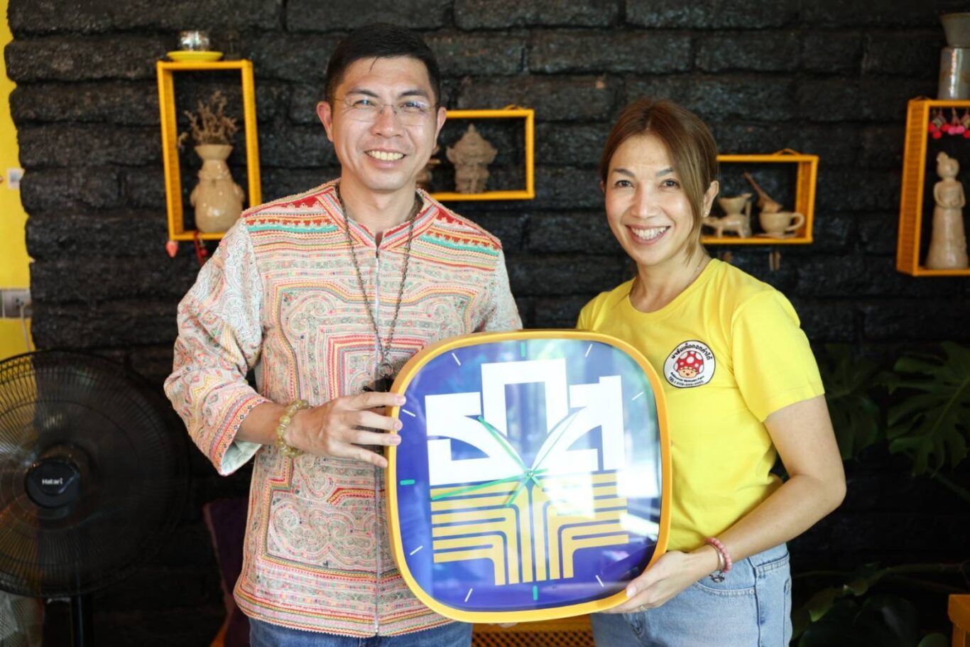 จากนั้นได้เดินทางไปเยี่ยมชมการดำเนินงานของลูกค้า ธ.ก.ส. ได้แก่ ฟาร์มเห็ดดอกคำใต้ ที่ดำเนินธุรกิจด้านการเพาะเห็ดชนิดต่าง ๆ ได้แก่ นางฟ้าภูฐาน นางนวลสีชมพู นางรมดำ นางรมสีทอง และนางรมฮังการี โดยมีการจำหน่ายทั้งเห็ดสด ก้อนเห็ด และการแปรรูปเห็ด เช่น เห็ดทอด น้ำพริกเห็ด และแหนมเห็ด ซึ่งทางฟาร์มฯ ได้มีการพัฒนาและปรับพื้นที่ให้เป็นศูนย์การเรียนรู้ ที่เปิดโอกาสให้กับเกษตรกรและผู้ประกอบการที่สนใจเข้ามาเรียนรู้วิธีการเพาะและแปรรูปเห็ด เพื่อนำองค์ความรู้ไปปรับใช้และต่อยอดการดำเนินธุรกิจของตนเอง