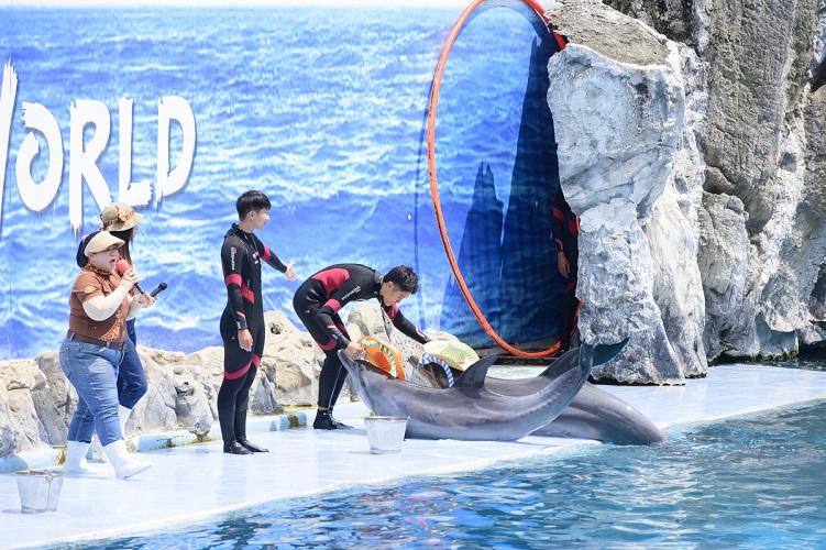 ต่อด้วยการชมโชว์และความน่ารักของโลมา สิงโตทะเล นก และตื่นเต้นไปกับคาวบอยสตั๊นท์