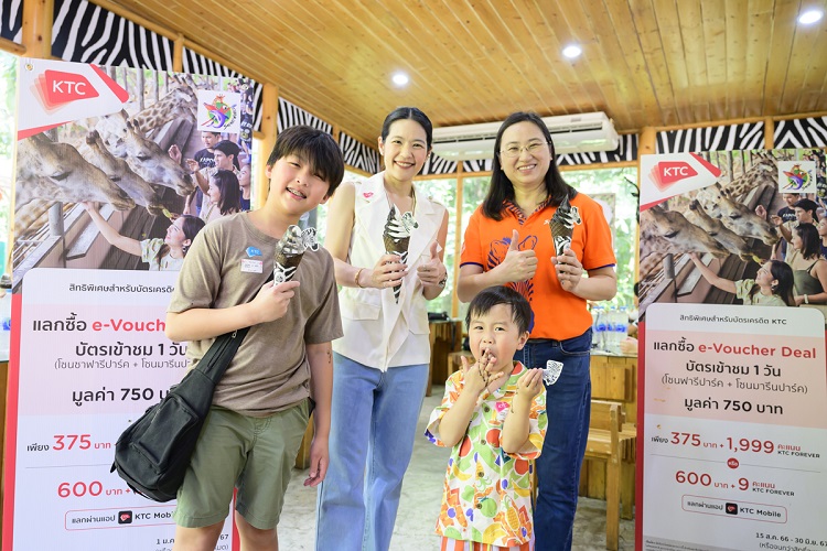 นางสาววริษฐา พัฒนรัชต์ ผู้บริหารสูงสุด ฝ่ายการตลาดบัตรเครดิต “เคทีซี” หรือ บริษัท บัตรกรุงไทย จำกัด (มหาชน) ร่วมกับ นางสาวอัมพรศรี คิ้วคชา กรรมการผู้ช่วยผู้จัดการใหญ่ บริษัท ซาฟารีเวิลด์ จำกัด (มหาชน) จัดกิจกรรม “KTC Fun & Friend Family Day @ Safari World” ชวนอินฟลูเอนเซอร์ สายท่องเที่ยวและครอบครัวกว่า 30 คน ร่วมสัมผัสประสบการณ์ “คะแนนน้อยแลกได้” กับการใช้คะแนน KTC FOREVER แลกบัตรเข้าชมซาฟารีเวิลด์ หรือแลกไอศกรีมโคน Soft Serve ยีราฟ ม้าลายและนกมาคอว์ ณ ซาฟารีเวิลด์ ถนนรามอินทรา