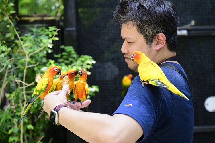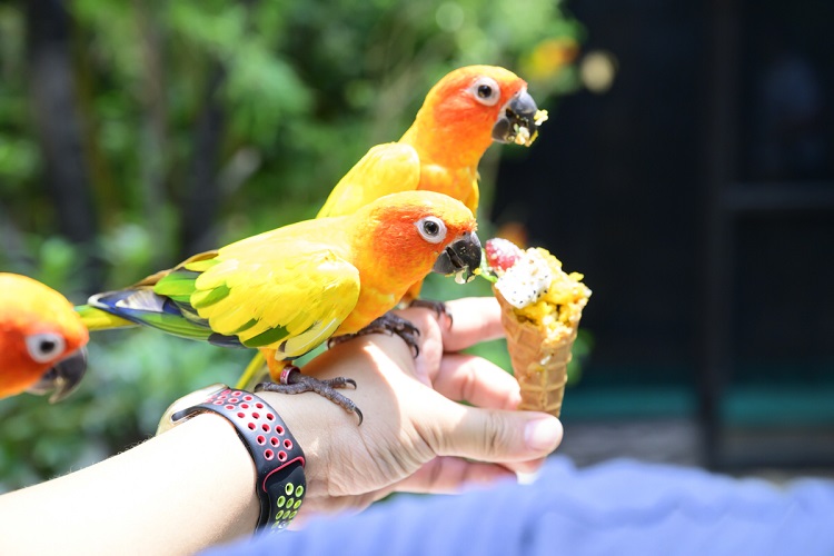 สัมผัสนกเล็กสีสันสดใส Sun Conure กว่า 200 ตัว อย่างใกล้ชิด และป้อนอาหารนกแนวใหม่ในรูปแบบ “โคนไอศกรีม”