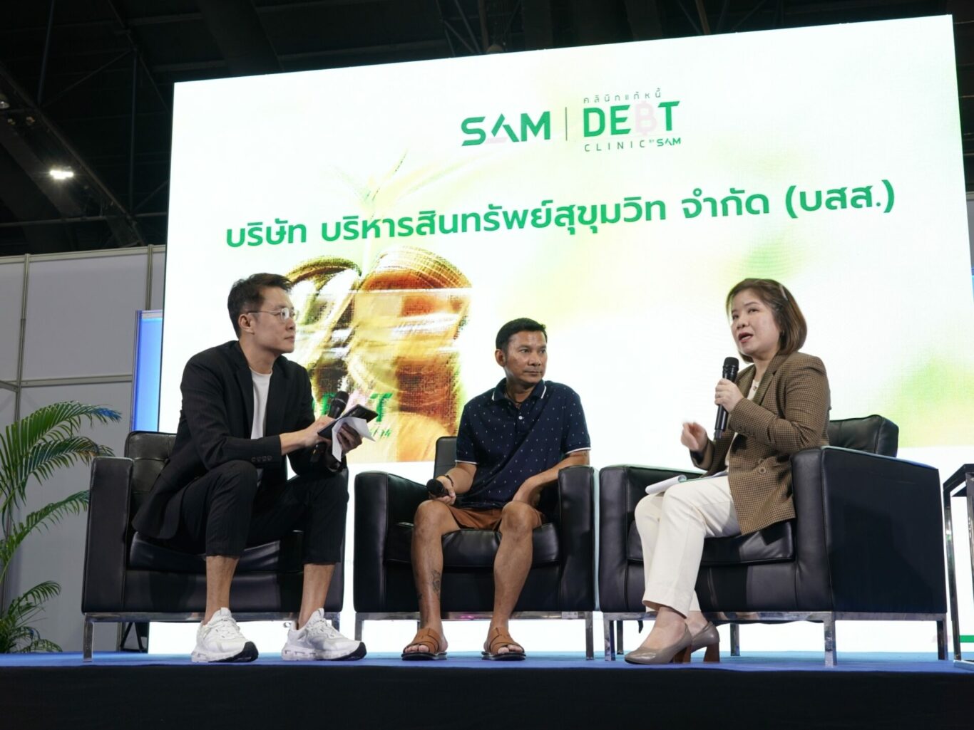 พร้อมกันนี้ ยังมีการจัดเสวนาพิเศษ “หนี้บัตรแก้ได้ ถ้าใจมั่น” โดยเชิญลูกค้าในโครงการฯ มาร่วมแบ่งปันประสบการณ์ และแนะนำโครงการคลินิกแก้หนี้เพื่อสร้างการรับรู้และตระหนักถึงปัญหาหนี้สินที่เกิดขึ้น รวมทั้ง SAM ยังได้เปิดโต๊ะเจรจา ให้คำปรึกษาลูกค้าปรับโครงสร้างหนี้ของ SAM เองในบูธของกรมบังคับคดีอีกด้วย