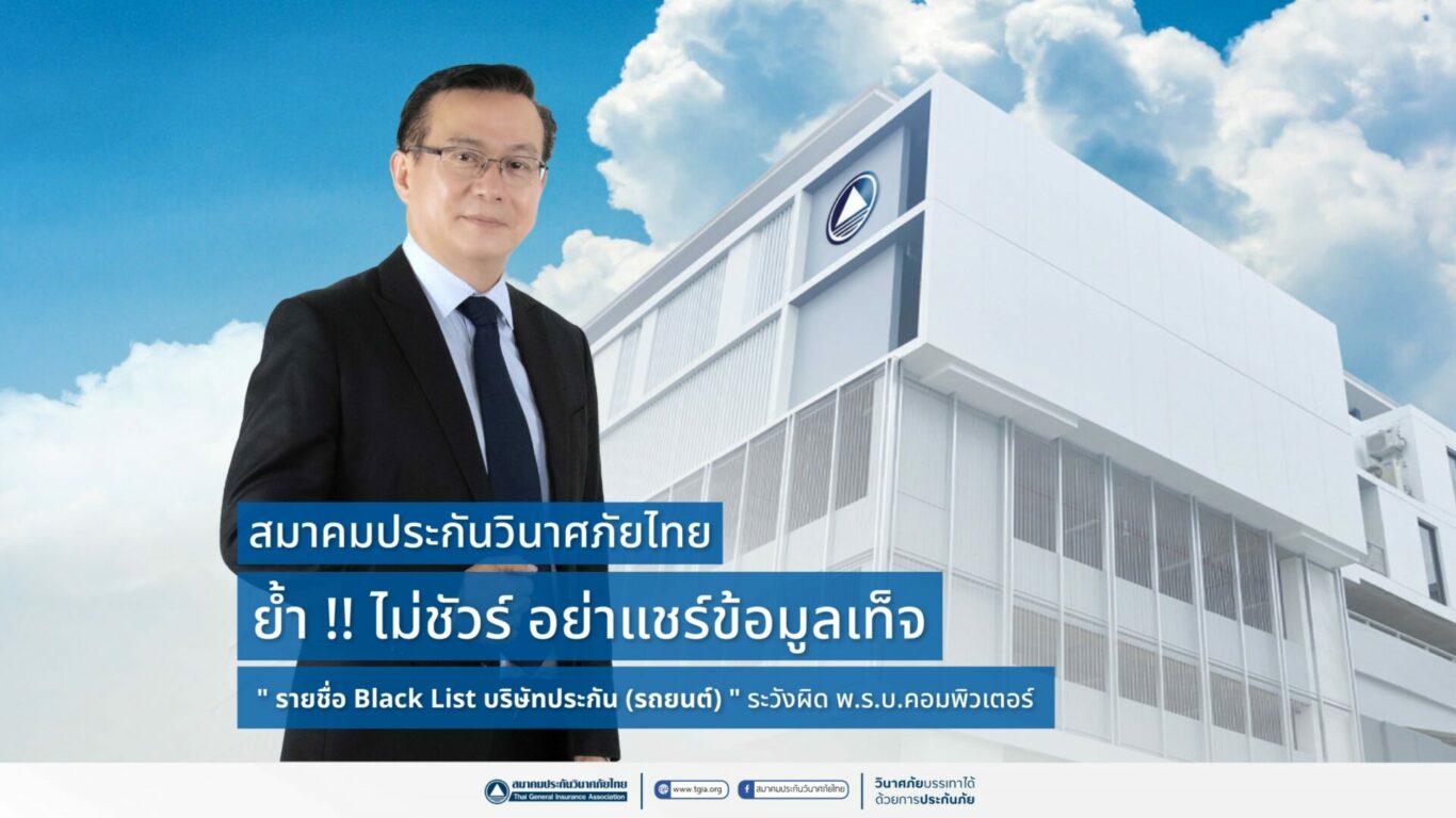 ดร.สมพร สืบถวิลกุล นายกสมาคมประกันวินาศภัยไทย กล่าวว่า จากกรณีที่มีการเผยแพร่ข้อความเกี่ยวกับรายชื่อบริษัทประกัน (รถยนต์) ที่ถูก Black List เนื่องจากสถานะทางการเงินและการไม่ปฏิบัติตามสัญญาประกันภัยทางโซเชียลมีเดียนั้น สมาคมประกันวินาศภัยไทย ได้ทำการตรวจสอบข้อความดังกล่าวพบว่า เป็นข้อความเก่าที่เคยถูกส่งต่อกันมาแล้วหลายครั้ง และล่าสุดปี 2567 ได้ถูกนำกลับมาเผยแพร่ซ้ำอีกครั้ง โดยข้อความดังกล่าวเป็นข้อความเดิมที่เป็นเท็จ สร้างความเสียหายต่อบริษัทประกันภัยและกระทบต่อภาพลักษณ์ของธุรกิจประกันวินาศภัย รวมถึงทำลายความเชื่อมั่นของผู้เอาประกันภัยและประชาชนเป็นอย่างมาก