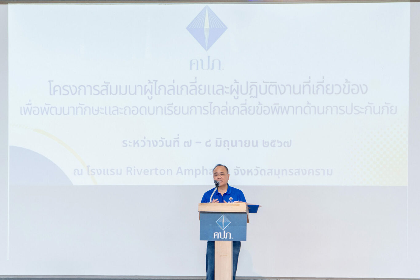 นายชูฉัตร ประมูลผล เลขาธิการคณะกรรมการกำกับและส่งเสริมการประกอบธุรกิจประกันภัย (เลขาธิการ คปภ.) เป็นประธานเปิด “โครงการสัมมนาผู้ไกล่เกลี่ยและผู้ปฏิบัติงานที่เกี่ยวข้องเพื่อพัฒนาทักษะและถอดบทเรียนการไกล่เกลี่ยข้อพิพาทด้านการประกันภัย” ระหว่างวันที่ 7-8 มิถุนายน 2567 ณ โรงแรม Riverton Amphawa จังหวัดสมุทรสงคราม
