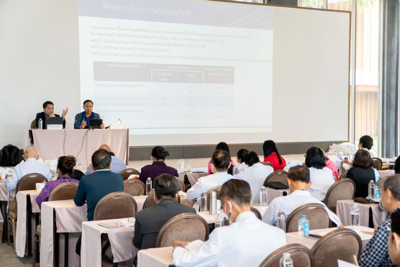 โดยได้รับเกียรติจาก นายบุญรอด ตันประเสริฐ อดีตผู้พิพากษาหัวหน้าคณะในศาลฎีกา บรรยายในหัวข้อ “เทคนิคการไกล่เกลี่ยข้อพิพาทและการเพิ่มประสิทธิภาพการไกล่เกลี่ยโดยผู้ชำนาญการ สำนักงาน คปภ.” และ นายโชติช่วง ทัพวงศ์ อดีตผู้พิพากษาอาวุโส ศาลอุทธรณ์ ภาค 7 และผู้ทรงคุณวุฒิด้านการจัดการความขัดแย้งและไกล่เกลี่ยข้อพิพาท ให้เกียรติเป็นวิทยากรถอดบทเรียนการไกล่เกลี่ยข้อพิพาทและแลกเปลี่ยนความรู้ ระดมความคิดเห็นเกี่ยวกับประเด็นปัญหาข้อพิพาทด้านการประกันภัย รวมถึงการเพิ่มเติมองค์ความรู้ในหัวข้อ “สัญญาประกันภัยสุขภาพมาตรฐานใหม่” โดย นางปรียานุช จีระศิลป์ หัวหน้ากลุ่ม กลุ่มนโยบายการกำกับผลิตภัณฑ์ประกันภัย และหัวข้อ “กรมธรรม์ประกันภัยรถยนต์ไฟฟ้าและกรณีศึกษา” โดย นายคณานุสรณ์ เที่ยงตระกูล ผู้อำนวยการฝ่ายอาวุโส ฝ่ายคุ้มครองสิทธิประโยชน์ และ นายพงศกร ภาณุสานต์ ผู้เชี่ยวชาญพิเศษ กลุ่มกำกับผลิตภัณฑ์ประกันวินาศภัยสำหรับบุคคล