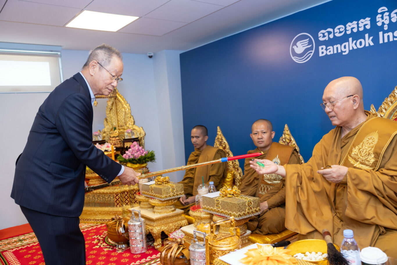 โดยมีสมเด็จพระอภิสิริสุคนธา มหาสังฆราชาธิบดี บัว กรี สมเด็จพระสังฆราชฝ่ายธรรมยุติกนิกายของกัมพูชา เป็นประธานสงฆ์ เพื่อความเป็นสิริมงคลในการดำเนินธุรกิจให้เจริญก้าวหน้าและประสบผลสำเร็จ โดยมีคณะกรรมการ คณะผู้บริหาร และพนักงานเข้าร่วมพิธีดังกล่าว ณ Bangkok Insurance (Cambodia) เลขที่ 181 ถนนนโรดม สังกัดบึงเกงกอง 1 จังหวัดพนมเปญ ประเทศกัมพูชา เมื่อวันที่ 11 มิถุนายน 2567