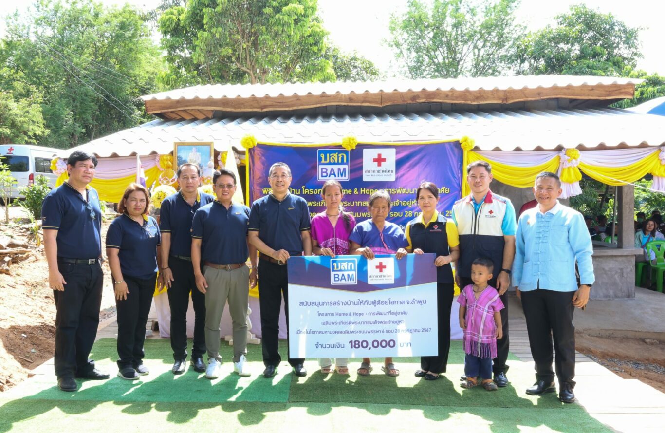 นายบัณฑิต อนันตมงคล ประธานเจ้าหน้าที่บริหารพร้อมด้วยผู้บริหารและพนักงาน บริษัทบริหารสินทรัพย์ กรุงเทพพาณิชย์ จำกัด (มหาชน) หรือ BAM ร่วมกับ นางสาธิกา กิตติธนดิตถ์ รองนายกเหล่ากาชาดจังหวัดลำพูน ว่าที่ ร.ต.ฉัตรดนัย สุภาษี ปลัดอาวุโส /นายกกิ่งกาชาดอำเภอทุ่งหัวช้าง ส่งมอบบ้าน BAM “โครงการ Home & Hope การพัฒนาที่อยู่อาศัย เฉลิมพระเกียรติพระบาทสมเด็จพระเจ้าอยู่หัว เนื่องในโอกาสมหามงคลเฉลิมพระชนมพรรษา 6 รอบ 28 กรกฎาคม 2567” ให้กับ นางผัด ตาดี อาศัยอยู่ ณ อำเภอทุ่งหัวช้าง จังหวัดลำพูน