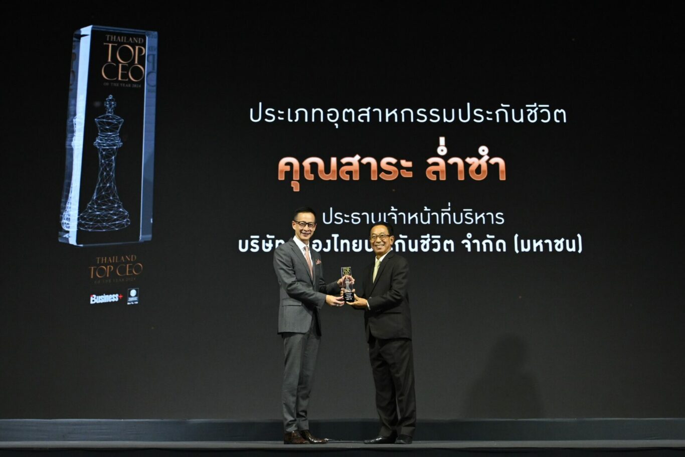 นายสาระ ล่ำซำ ประธานเจ้าหน้าที่บริหาร บริษัท เมืองไทยประกันชีวิต จำกัด (มหาชน) รับรางวัลสุดยอดผู้นำองค์กรแห่งปี “THAILAND TOP CEO OF THE YEAR 2024” ประเภท “อุตสาหกรรมประกันชีวิต” โดยเป็นซีอีโอรายแรกที่ได้รับรางวัลดังกล่าวติดต่อกัน 3 ปี ซึ่งจัดขึ้นโดยนิตยสาร Business+ บริษัท เออาร์ไอพี จำกัด (มหาชน) ร่วมกับคณะพาณิชยศาสตร์และการบัญชี มหาวิทยาลัยธรรมศาสตร์ เพื่อยกย่องและเชิดชูเกียรติสุดยอดผู้นำองค์กรแห่งปีที่คุณสมบัติถึงพร้อมด้วยวิสัยทัศน์ ความเป็นผู้นำ ความสามารถในการบริหารองค์กร คำนึงถึงสิ่งแวดล้อมและชุมชน เพื่อสร้างความยั่งยืนให้แก่องค์กร และต่อยอดไปสู่การพัฒนาเศรษฐกิจไทยให้ยั่งยืน พร้อมเป็นแบบอย่างให้กับผู้บริหารหรือซีอีโอรุ่นใหม่ได้เรียนรู้และสร้างความสำเร็จของตนเองต่อไป ตามแนวคิด “Iconify the Master” หรือ ต้นแบบผู้นำแห่งอนาคต ทั้งนี้ ได้รับเกียรติจาก ฯพณฯ นุรักษ์ มาประณีต องคมนตรี ประธานในพิธีมอบรางวัลดังกล่าว ณ โรงแรมอินเตอร์คอนติเนนตัล กรุงเทพฯ