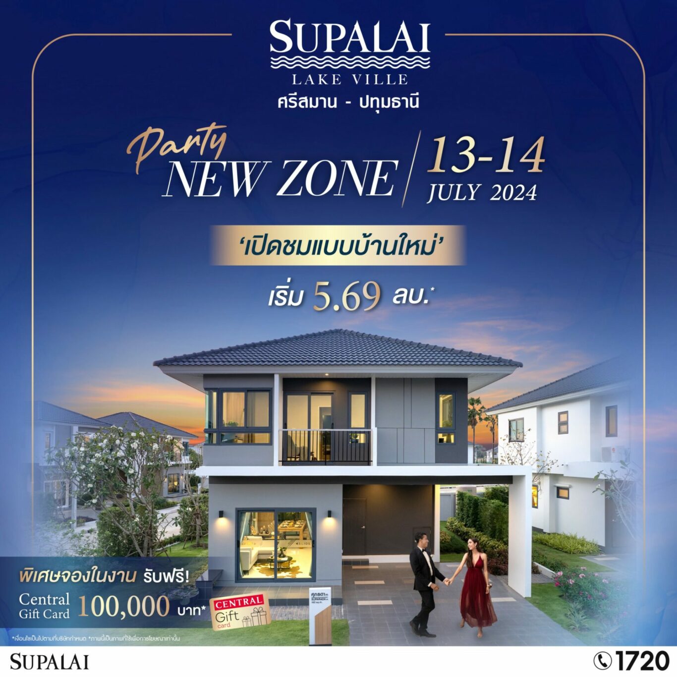 เปิดชมแบบบ้านใหม่ โซนใหม่ล่าสุด “ศุภาลัย เลควิลล์ ศรีสมาน-ปทุมธานี” บ้านเดี่ยวหรู 2 ชั้นหลังใหญ่ ฟังก์ชันครบครัน ในราคาเริ่มต้นที่ 5.69 ล้านบาท เลือกโซนที่ใช่เป็นเจ้าของก่อนใคร เมื่อจองในงาน PARTY “NEW ZONE” วันที่ 13-14 กรกฎาคมนี้ รับฟรี ! Central Gift Card มูลค่า 100,000 บาท พร้อมแอร์ทุกห้องนอน* และค่าส่วนกลางฟรี 3 ปี* เปิดให้เยี่ยมชมบ้านตัวอย่างเป็นทางการแล้ววันนี้