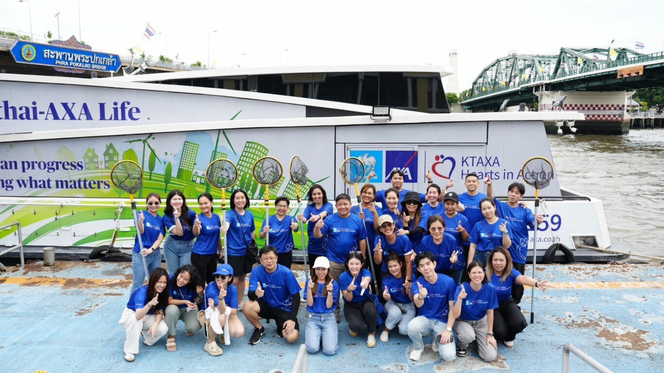 บมจ. กรุงไทย-แอกซ่า ประกันชีวิต ในฐานะผู้นำบริษัทประกันที่ใส่ใจสิ่งแวดล้อม หรือ ‘Green Insurer’ นำโดย ลาทีฟา ซาอีด ประธานเจ้าหน้าที่บริหาร ฝ่ายทรัพยากรบุคคลและการสื่อสารองค์กร แอกซ่า อินเตอร์เนชั่นแนล มาร์เก็ต พร้อมด้วย บุปผาวดี โอวรารินท์ ประธานเจ้าหน้าที่บริหาร ฝ่ายทรัพยากรบุคคลและภาพลักษณ์องค์กรและการสื่อสารองค์กร สานต่อนโยบายด้าน Climate Change & Biodiversity หรือการเปลี่ยนแปลงสภาพภูมิอากาศ และความหลากหลายด้านชีวภาพ จัดโครงการ “Save Our River” โดยสนับสนุนเรือไฟฟ้า (EV boat) และติดตั้งถังขยะรีไซเคิล เพื่อช่วยการจัดการขยะจากต้นทางก่อนไหลลงสู่แม่น้ำ และทะเล