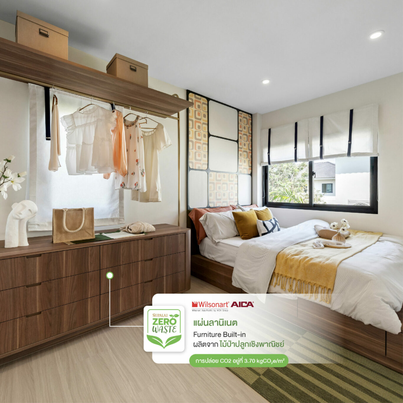 สำหรับความร่วมมือกับศุภาลัย เลือกใช้แผ่นลามิเนต นำมาตกแต่งปกปิดผิวของเฟอร์นิเจอร์ Built-in ภายในบ้านตัวอย่างศุภาลัย เป็นผลิตภัณฑ์ที่มีส่วนประกอบในการผลิตมาจากไม้จากป่าปลูกเชิงพาณิชย์ ลดการตัดต้นไม้ และเป็นผลิตภัณฑ์ที่ปล่อยสารฟอร์มัลดีไฮต์อยู่ในระดับที่ต่ำกว่าที่มาตรฐานกำหนด ช่วยเพิ่มคุณภาพชีวิตที่ดีขึ้นและปลอดภัยต่อ ผู้อยู่อาศัย อีกทั้งยังเป็นมิตรกับสิ่งแวดล้อม ซึ่งลามิเนตของแบรนด์ Wilsonart มีค่าการปล่อยก๊าซคาร์บอนไดออกไซด์ ต่ำที่ 3.70 กิโลกรัมคาร์บอนไดออกไซต์เทียบเท่าต่อตารางเมตร และมีการใช้ Recycle raw material ในกระบวนการผลิตมากกว่า 48%