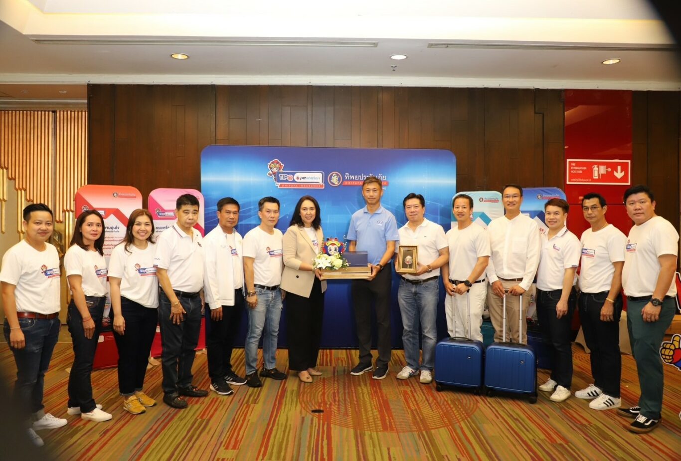 นางสาวสุภาพ ประดับการ รองกรรมการผู้จัดการใหญ่ บริษัท ทิพยประกันภัย จำกัด (มหาชน) พร้อมด้วย นายเสรี คีรีศรี และ นายเวทย์ นุชเจริญ ที่ปรึกษาประธานกรรมการ และคณะผู้บริหาร บมจ. ทิพยประกันภัย ร่วมกับ นายพัฒนา ตั้งกิติกุล นายกสมาคมการค้าผู้แทนจำหน่ายสถานีบริการน้ำมันพลังไทย (PDA) จัดงานสัมมนาโครงการ TIP@PDA STRATEGY TO DRIVE THE INSURANCE BUSINESS 2024 ภายใต้โครงการ TIP@pttstation ให้แก่ ผู้ประกอบการ PTT Station 4 ภาค จำนวน 345 คน