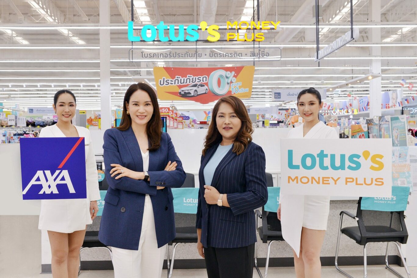 นางสาวกาญจนาพร ศรีโมรา ผู้อำนวยการอาวุโส ฝ่ายประกันภัย โลตัส มันนี่ พลัส ผู้ให้บริการด้านบัตรเครดิต สินเชื่อส่วนบุคคล และโบรคเกอร์ประกันภัย กล่าวว่า “โลตัส มันนี่ พลัส ในฐานะผู้นำในธุรกิจนายหน้าประกันภัยผ่านช่องทางค้าปลีก (ให้บริการนายหน้าประกันภัยโดย บริษัท โลตัสส์ เจเนอรัล อินชัวรันส์ โบรคเกอร์ จำกัด) รู้สึกยินดีเป็นอย่างยิ่งที่ได้ร่วมมือกับแอกซ่าประกันภัย เพื่อสร้างประสบการณ์ที่ดียิ่งขึ้นให้แก่ลูกค้าของเราด้วยการผสานจุดเด่นจากทั้งสองบริษัทเข้ากันอย่างลงตัว ทั้งในด้านความเป็นผู้เชี่ยวชาญด้านผลิตภัณฑ์ประกันภัย และด้านเครือข่ายช่องทางจำหน่ายที่ครอบคลุมทุกภูมิภาค เพื่อเพิ่มทางเลือกให้กับลูกค้าที่ต้องการเลือกซื้อผลิตภัณฑ์ประกันภัยรถยนต์ที่หลากหลายมีแผนความคุ้มครองที่ครอบคลุม และเบี้ยประกันภัยที่คุ้มค่าของแอกซ่าประกันภัยได้สะดวกและเข้าถึงง่ายยิ่งขึ้นผ่านเคาน์เตอร์บริการโลตัส มันนี่ พลัส กว่า 200 สาขาในห้างโลตัสทั่วประเทศ พร้อมทางเลือกในการชำระเบี้ยประกันภัยผ่านบัตรเครดิตและเงินสดให้ลูกค้าเลือกได้ตามความต้องการ เพื่อตอบทุกโจทย์เรื่องประกันภัยรถยนต์อย่างครอบคลุมซึ่งจะสามารถสร้างการเติบโตจากการขยายฐานลูกค้าทั้งสองฝ่าย รวมไปถึงโอกาสในการสร้างความร่วมมือเพิ่มเติมในอนาคต”