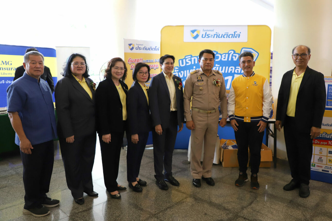 “ประกันติดโล่” แบรนด์นายหน้าประกันที่มุ่งส่งเสริมให้ประชาชนเข้าถึงประกันภัย บริหารโดย บริษัท เงินติดล้อ จำกัด (มหาชน) หรือTIDLOR โดย นายธนกร นพกิจกำจร (ที่ 2 จากขวา) ผู้จัดการอาวุโสแผนกสื่อสารองค์กร นำทีมงานออกบูธจัดกิจกรรมส่งเสริมความรู้ด้านประกันภัย และ พ.ร.บ. ในงานเสวนาความรู้ด้านการประกันภัย หัวข้อ “ระบบประกันภัย คุ้มครองชีวิต เลย ไม่คิดกังวล” ภายใต้ “โครงการส่งเสริมผลิตภัณฑ์ประกันภัยเชิงรุกสู่ระดับภูมิภาคอย่างยั่งยืน ประจำปี 2567” จัดโดย สำนักงานคณะกรรมการกำกับและส่งเสริมการประกอบธุรกิจประกันภัย (คปภ.) ซึ่งภายในบูธได้จัดกิจกรรมสนุกสนาน สอดแทรกความรู้ และประโยชน์ของประกันภัย พ.ร.บ. ประกันภัยรถยนต์ และประกันภัยประเภทอื่น ๆ ผ่านกิจกรรมที่สร้างสถานการณ์ที่อาจเกิดขึ้นจริง เพื่อให้ผู้เข้าร่วมกิจกรรมร่วมกันคิด วิเคราะห์ แยกแยะ สร้างความรู้ และความเข้าใจ พร้อมลุ้นรับของรางวัลมากมาย