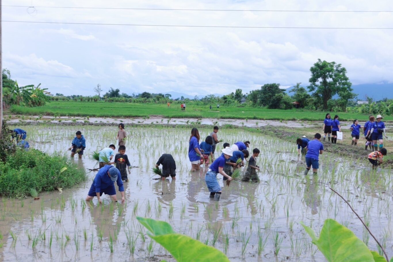 บมจ.กรุงไทย-แอกซ่า ประกันชีวิต นำโดย นางสาวบุปผาวดี โอวรารินท์ ประธานเจ้าหน้าที่บริหาร ฝ่ายทรัพยากรมนุษย์และภาพลักษณ์องค์กรและการสื่อสารองค์กร (คนกลาง) นำทีมคณะผู้บริหาร พนักงาน และฝ่ายขายจิตอาสา ร่วมเดินหน้าสร้างความยั่งยืนให้กับชุมชน ผ่านกิจกรรมปลูกข้าว พร้อมทั้งมอบคอมพิวเตอร์ ในโครงการ “แผ่นดินทองเพื่อน้องๆ บ้านนานา ปีที่ 17” ณ. มูลนิธิพันธกิจเด็กและชุมชน บ้านนานา อ. แม่สาย จ. เชียงราย ซึ่งเป็นโครงการที่บริษัทฯ จัดทำอย่างต่อเนื่อง และช่วยสร้างรายได้ที่ยั่งยืน โดยสามารถช่วยสร้างผลผลิตข้าวให้แก่ชุมชน จาก 2,000 ก.ก. ต่อปี เพิ่มสูงขึ้นเป็นกว่า 7,000 ก.ก. ต่อปี