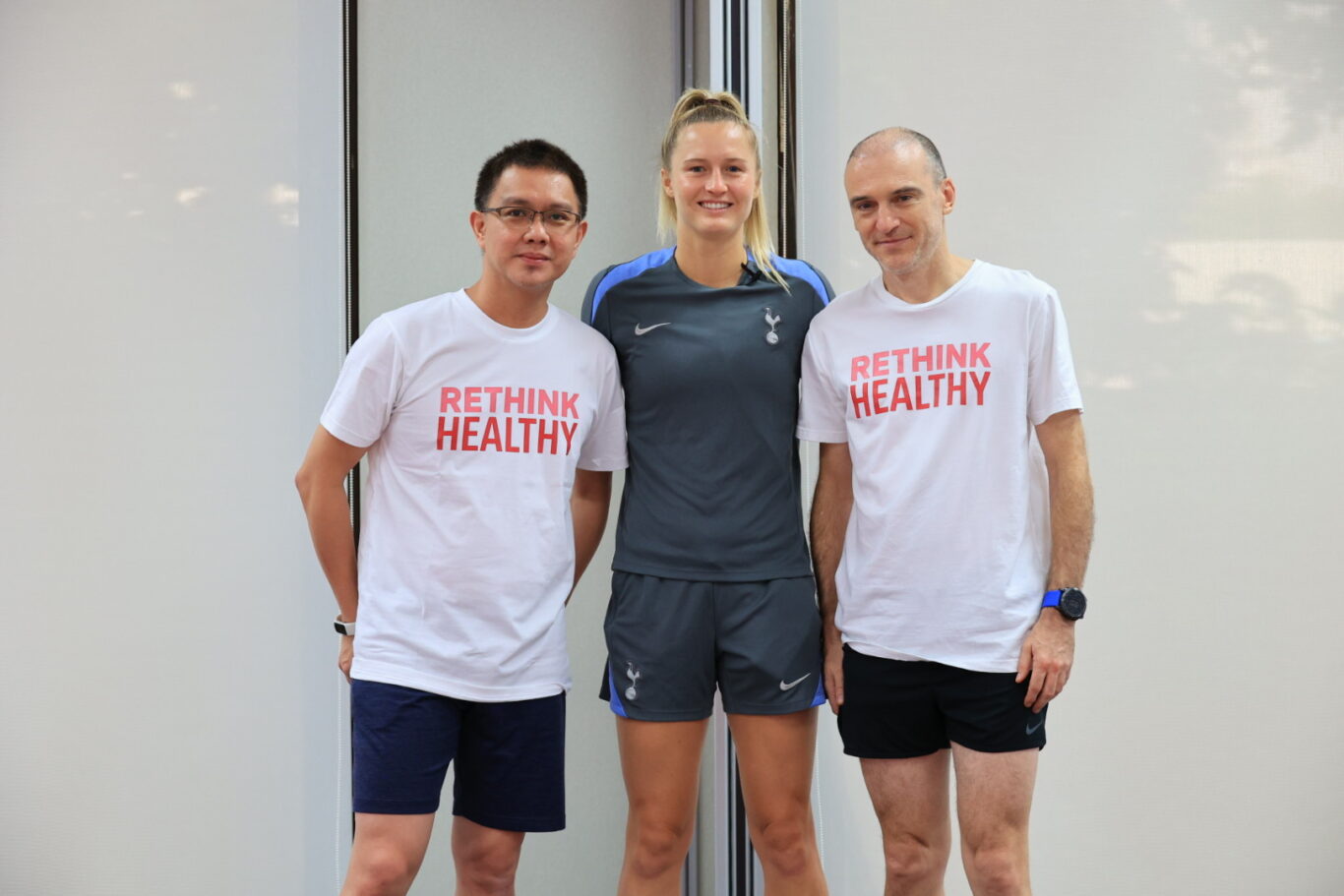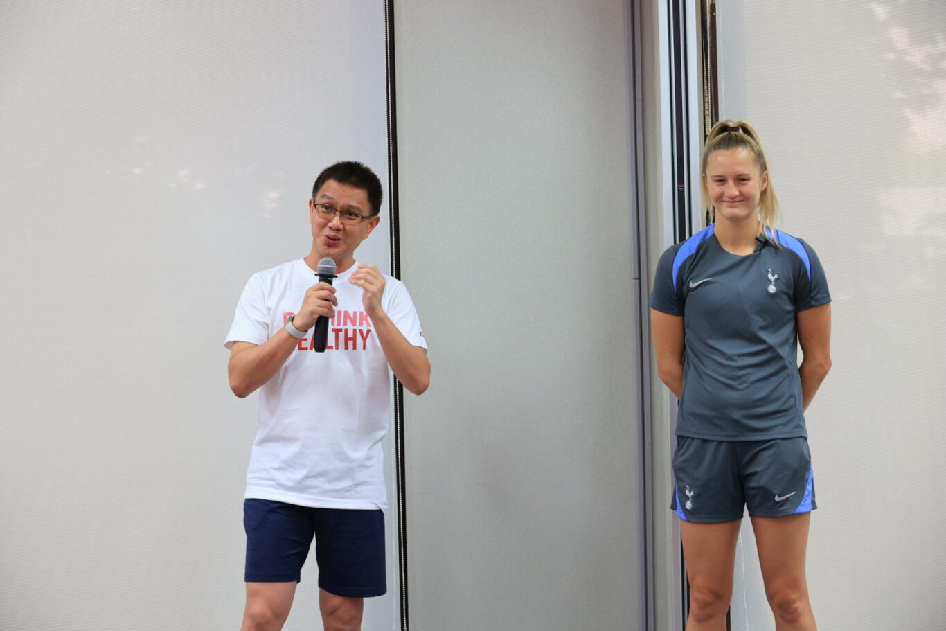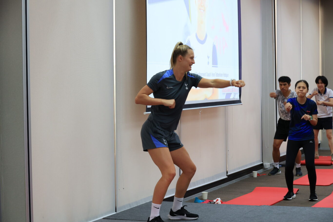 กรุงเทพฯ 20 สิงหาคม 2567 – เอไอเอ ประเทศไทย ร่วมกับสโมสรฟุตบอลชื่อดังระดับโลก ท็อตแน่ม ฮ็อตสเปอร์ จากประเทศอังกฤษ จัดกิจกรรม “Special Workout Session with Coach Lily” โดยโค้ช “ลิลลี่ เจอร์วิส (Lily Jervis)” Development Coach จากสโมสระดับโลก “ท็อตแน่ม ฮ็อตสเปอร์” ซึ่งมีผู้บริหารเอไอเอ ประเทศไทย พร้อมด้วยเพื่อนพนักงานกว่า 50 คน ร่วมสนุกกับคลาส HIIT Workout การออกกำลังกายแบบหนักสลับเบา เพิ่มการเผาผลาญไขมัน ให้การออกกำลังกายสนุกและสร้างสรรค์ เผาผลาญได้หลายร้อยแคลอรี่และยังเบิร์นต่อเนื่องหลังออกกำลังกาย