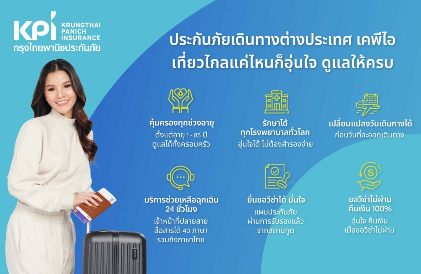 ล่าสุด เคพีไอ ได้ร่วมมือกับ บริษัท แอดวานซ์ ดิจิทัล ดิสทริบิวชั่น จำกัด บริษัทชั้นนำด้านการสื่อสารโทรคมนาคม ในการนำเสนอแผนประกันภัยการเดินทาง เคพีไอ ทั้งแผนประกันภัยในประเทศและต่างประเทศ สำหรับลูกค้าที่เข้ามาใช้บริการ บนแอปพลิเคชัน my AIS และ บนเว็บไซต์ AIS (www.add-digital.co.th) เพื่อรองรับกลุ่มลูกค้าที่มีไลฟ์สไตล์รักในการท่องเที่ยว ให้สามารถช้อปประกันภัยเดินทางออนไลน์ ได้สะดวก ง่าย และรวดเร็ว ประกันภัยเดินทางต่างประเทศ เคพีไอ มอบความอุ่นใจให้นักท่องเที่ยวด้วย ความคุ้มครองสูงถึง 13 รายการ ลูกค้าสามารถเลือกทุนประกันภัยได้ตั้งแต่ 1- 5 ล้านบาท มีให้เลือกทั้งแผนรายปีและรายครั้ง มีทั้งหมด 5 แผน (แผน ASIA, Bronze, Silver, Gold และ แผน Exclusive) เบี้ยเริ่มต้น เพียง 120 บาท/4 วัน* ดูแลผู้เอาประกันภัยอายุตั้งแต่ 1 ปี – 85 ปี* จุดเด่นของแผนประกันภัยเดินทาง เคพีไอ ที่มอบให้ลูกค้า เช่น กรณีเกิดอุบัติเหตุหรือเจ็บป่วย สามารถเข้ารับการรักษาได้จากทุกโรงพยาบาลทั่วโลก โดยไม่ต้องสำรองจ่าย คุ้มครองตั้งแต่ก้าวแรกที่ออกจากบ้าน สามารถซื้อประกันเดินทางได้ล่วงหน้าก่อนเดินทาง 2 ชั่วโมง สามารถเปลี่ยนวันเดินทางได้ก่อนวันเดินทางโดยไม่เสียค่าใช้จ่าย* แผนความคุ้มครองได้รับการรับรองแล้วจากสถานทูต ได้มาตรฐานตามที่สถานทูตกำหนด อุ่นใจได้สำหรับผู้ที่จะใช้ยื่นขอวีซ่าเดินทางไปท่องเที่ยวในกลุ่มประเทศเชงเก้น คุ้มครองไฟล์ดีเลย์ กระเป๋าเดินทางล่าช้า และการพลาดต่อเที่ยวบิน ทุก 6 ชั่วโมง เพิ่มความอุ่นใจในทุกครั้งที่เดินทางด้วยบริการช่วยเหลือฉุกเฉินตลอด 24 ชั่วโมง หมดกังวลเรื่องการสื่อสาร เพราะเจ้าหน้าที่สามารถสื่อสารได้ถึง 40 ภาษา รวมถึงภาษาไทย