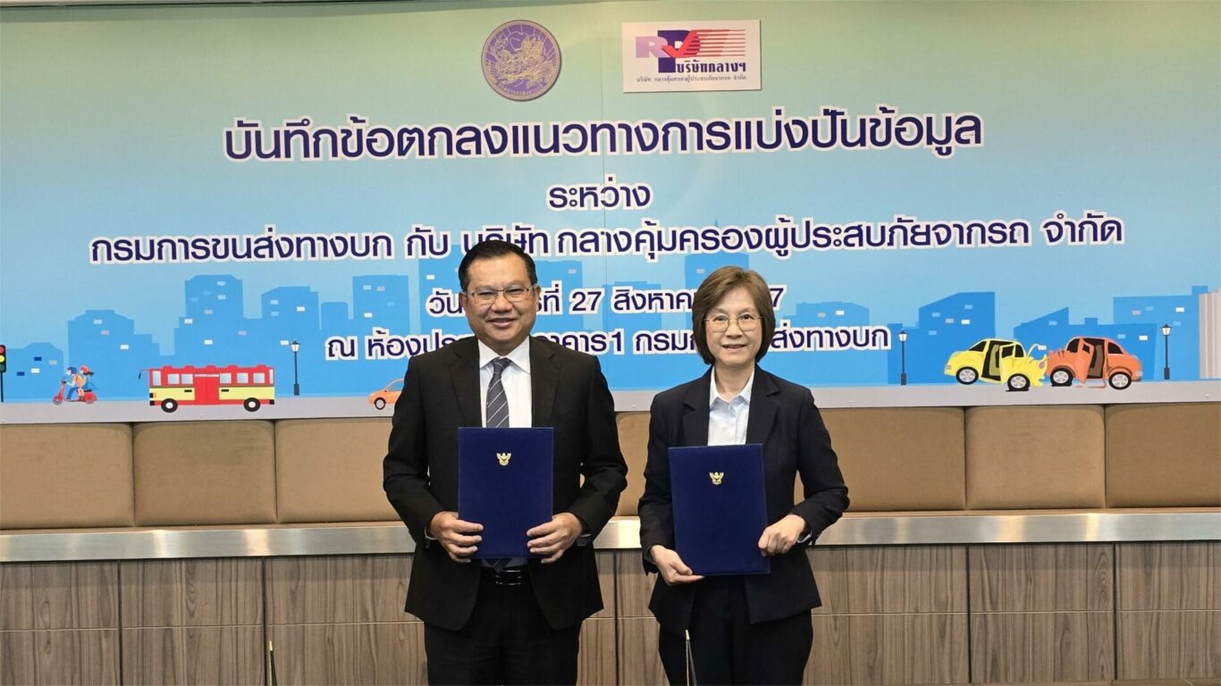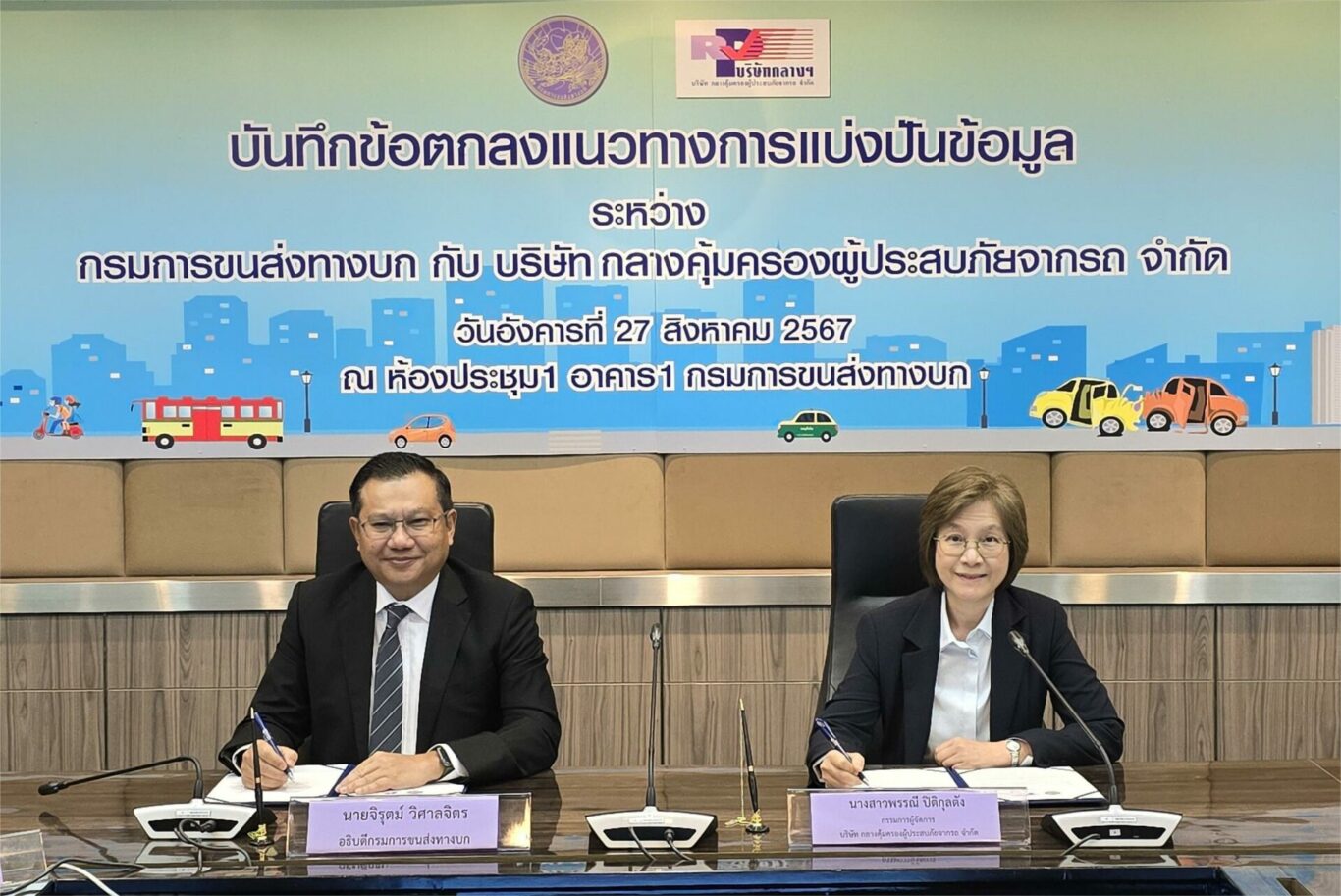 วันนี้ (27 สิงหาคม 2567) เวลา 10.00 น. ณ กรมการขนส่งทางบก นายจิรุตม์ วิศาลจิตร อธิบดีกรมการขนส่งทางบก และ นางสาวพรรณี ปิติกุลตัง กรรมการผู้จัดการบริษัท กลางคุ้มครองผู้ประสบภัยจากรถ จำกัด ได้ร่วมลงนามบันทึกข้อตกลง (MOU) แนวทางการแบ่งปันข้อมูล เพื่อแลกเปลี่ยนเชื่อมโยงข้อมูลที่เป็นประโยชน์ เพื่อยกระดับการแก้ไขปัญหาและลดอุบัติเหตุทางถนน โดยมีผู้บริหารของทั้ง 2 หน่วยงานและสื่อมวลชนเข้าร่วมงาน