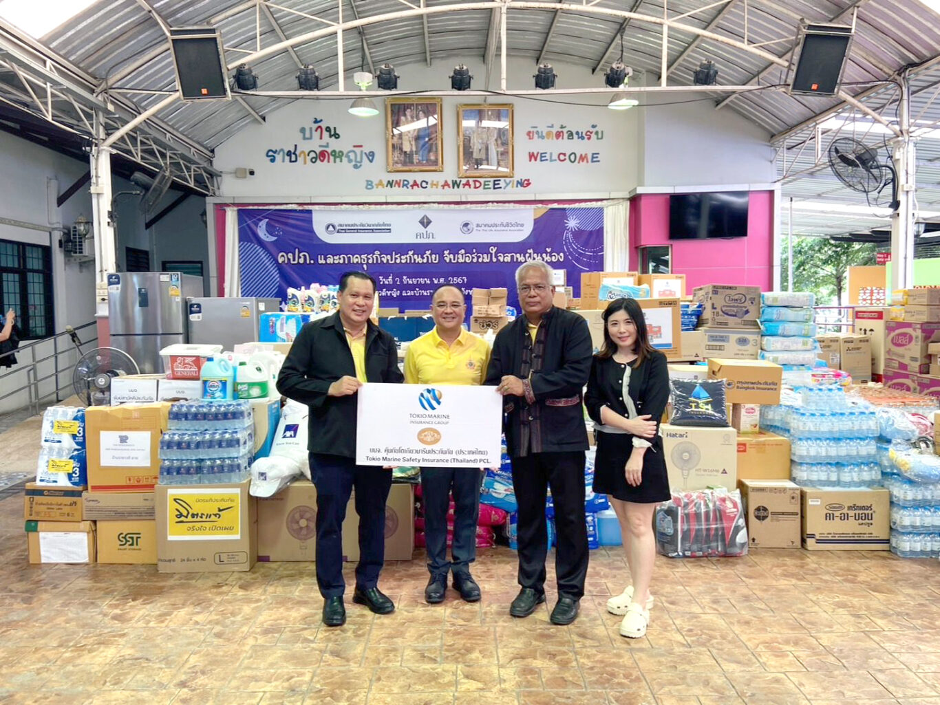 บริษัท คุ้มภัยโตเกียวมารีนประกันภัย (ประเทศไทย) จำกัด (มหาชน) นำโดย นายเชิดชัย ทองกุนา ผู้อำนวยการฝ่ายสินไหมรถยนต์ (ท่านที่ 1 จากซ้าย) ได้ร่วมมือกับ สำนักงานคณะกรรมการกำกับและส่งเสริมการประกอบธุรกิจประกันภัย (คปภ.) และภาคธุรกิจประกันภัย ภายใต้โครงการ “คปภ. และภาคธุรกิจประกันภัย จับมือร่วมใจสานฝันน้อง” มอบสิ่งของอุปโภค-บริโภค แด่มูลนิธิบ้านราชาวดี จังหวัดนนทบุรี นำโดย นายชูฉัตร ประมูลผล เลขาธิการสำนักงานคณะกรรมการกำกับและส่งเสริมการประกอบธุรกิจประกันภัย (คปภ.) (ที่ 2 จากซ้าย) โดยมี นายพิสิฐ พูลพิพัฒน์ รองอธิบดีกรมส่งเสริมและพัฒนาคุณภาพชีวิตคนพิการ (ที่ 2 จากขวา) เป็นผู้แทนในการรับมอบสิ่งของเครื่องอุปโภค-บริโภค