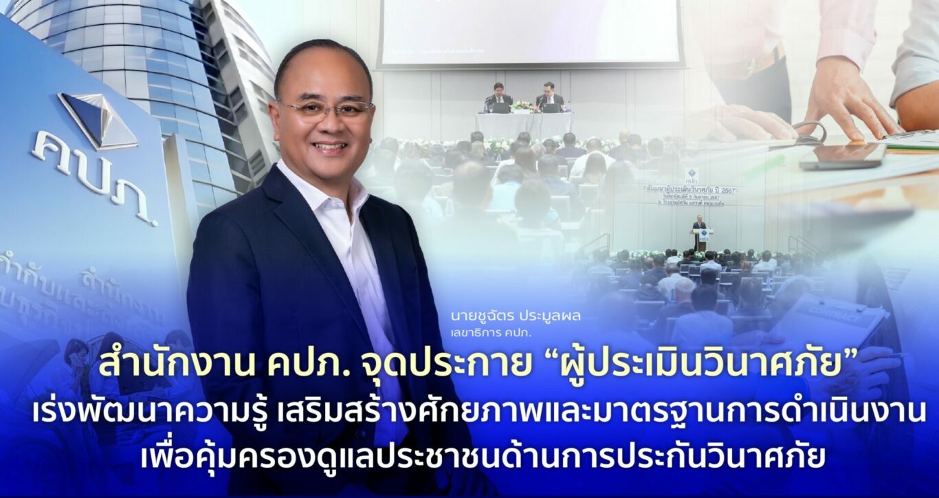นายชูฉัตร ประมูลผล เลขาธิการคณะกรรมการกำกับและส่งเสริมการประกอบธุรกิจประกันภัย (เลขาธิการ คปภ.) เป็นประธานเปิด “งานสัมมนาผู้ประเมินวินาศภัย ปี 2567” ณ ห้องประชุมอัศวิน แกรนด์ A โรงแรมอัศวิน แกรนด์ คอนเวนชั่น กรุงเทพฯ โดยมี นางสาววสุมดี วสีนนท์ รองเลขาธิการ ด้านกำกับคนกลางและประกันภัยภูมิภาค ผู้บริหารสำนักงานคณะกรรมการกำกับและส่งเสริมการประกอบธุรกิจประกันภัย (สำนักงาน คปภ.) นายปฏิภาณ สุดอารามนายกสมาคมผู้ประเมินวินาศภัย นายราเชนทร์ ดาวเรือง นายกสมาคมการค้าผู้สำรวจและประเมินวินาศภัยไทย ผู้ตรวจสอบและประเมินวินาศภัย เข้าร่วมงานดังกล่าว