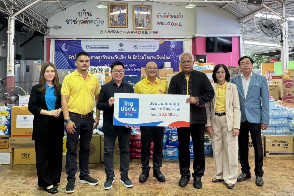 นายฉี-หลิง หยาง Chief Actuary (ที่ 3 จากซ้าย) บริษัท ไทยประกันชีวิต จำกัด (มหาชน) มอบเงินบริจาคแก่สถานคุ้มครองและพัฒนาคนพิการบ้านราชาวดีหญิง-ชาย จังหวัดนนทบุรี ภายใต้โครงการ “คปภ. และภาคธุรกิจประกันภัย จับมือร่วมใจสานฝันน้อง” จัดโดย สำนักงานคณะกรรมการกำกับและส่งเสริมการประกอบธุรกิจประกันภัย (คปภ.) โดยมีวัตถุประสงค์เพื่อเปิดโอกาสให้องค์กรต่างๆ ทุกภาคส่วนได้ร่วมเป็นส่วนหนึ่งในการพัฒนาสังคม โดยมี นายชูฉัตร ประมูลผล เลขาธิการ คปภ. เป็นประธานในพิธีส่งมอบ