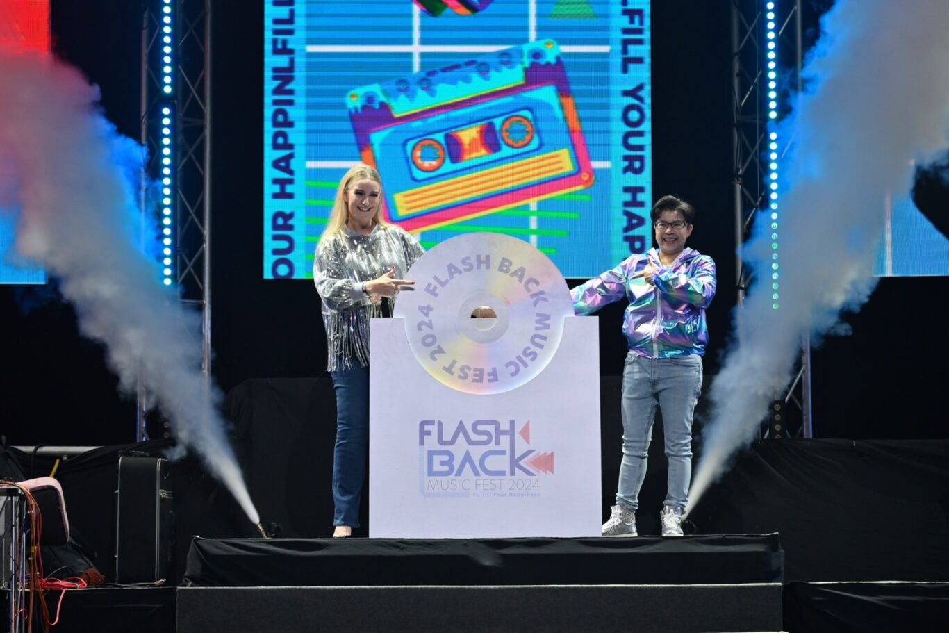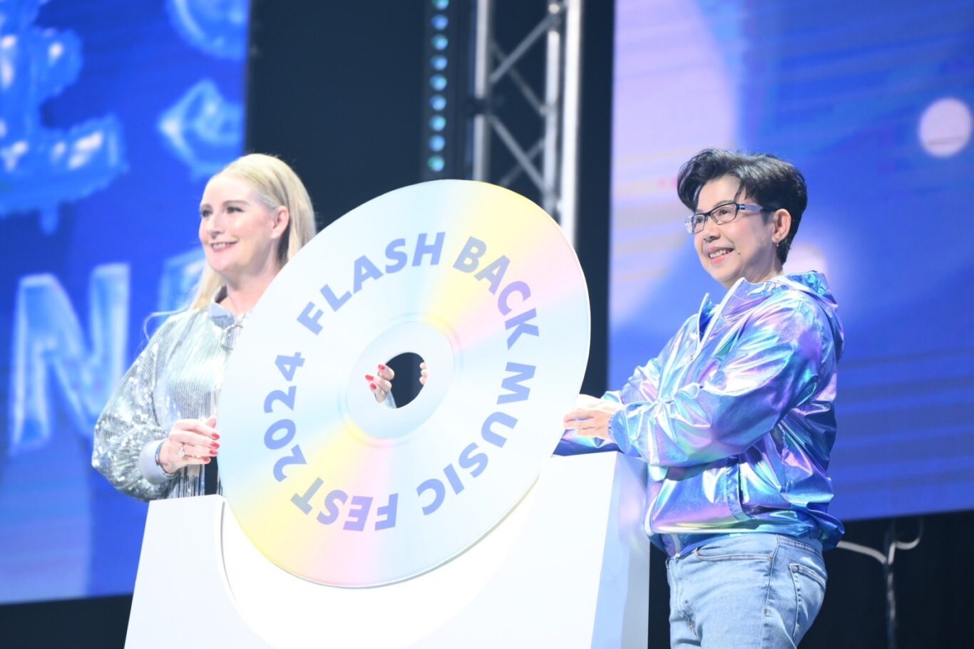 บมจ.กรุงไทย-แอกซ่า ประกันชีวิต นำโดย นางแซลลี่ โอฮาร่า ตำแหน่งประธานเจ้าหน้าที่บริหาร บริษัท แอกซ่า ในภูมิภาคเอเชียอาคเนย์ และประเทศเกาหลีใต้ (คนที่ 3 จากขวา) และ นางสาวบุปผาวดี โอวรารินท์ ประธานเจ้าหน้าที่บริหาร ฝ่ายทรัพยากรบุคคลและภาพลักษณ์องค์กรและการสื่อสารองค์กร (คนที่ 3 จากซ้าย) จัดคอนเสิร์ตครั้งยิ่งใหญ่ “KTAXA FLASHBACK MUSIC FEST 2024 Fulfill Your Happiness เติมเต็มทุกความสุข ย้อนวัยความสนุกไปด้วยกัน”