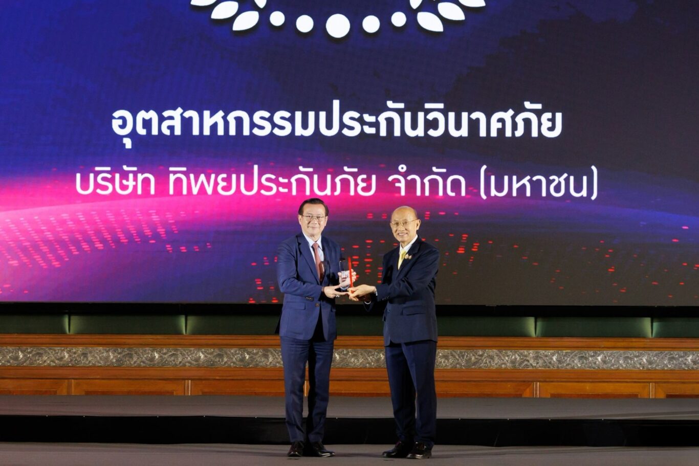 ดร.สมพร สืบถวิลกุล ประธานเจ้าหน้าที่บริหาร บริษัท ทิพย กรุ๊ป โฮลดิ้งส์ จำกัด (มหาชน) และกรรมการผู้จัดการใหญ่ บริษัท ทิพยประกันภัย จำกัด (มหาชน) รับมอบรางวัล “THAILAND TOP COMPANY AWARDS 2025” ประเภท อุตสาหกรรมประกันวินาศภัย จาก ฯพณฯ ศาสตราจารย์เกียรติคุณ นายแพทย์เกษม วัฒนชัย องคมนตรี ในฐานะประธานในงานฯ