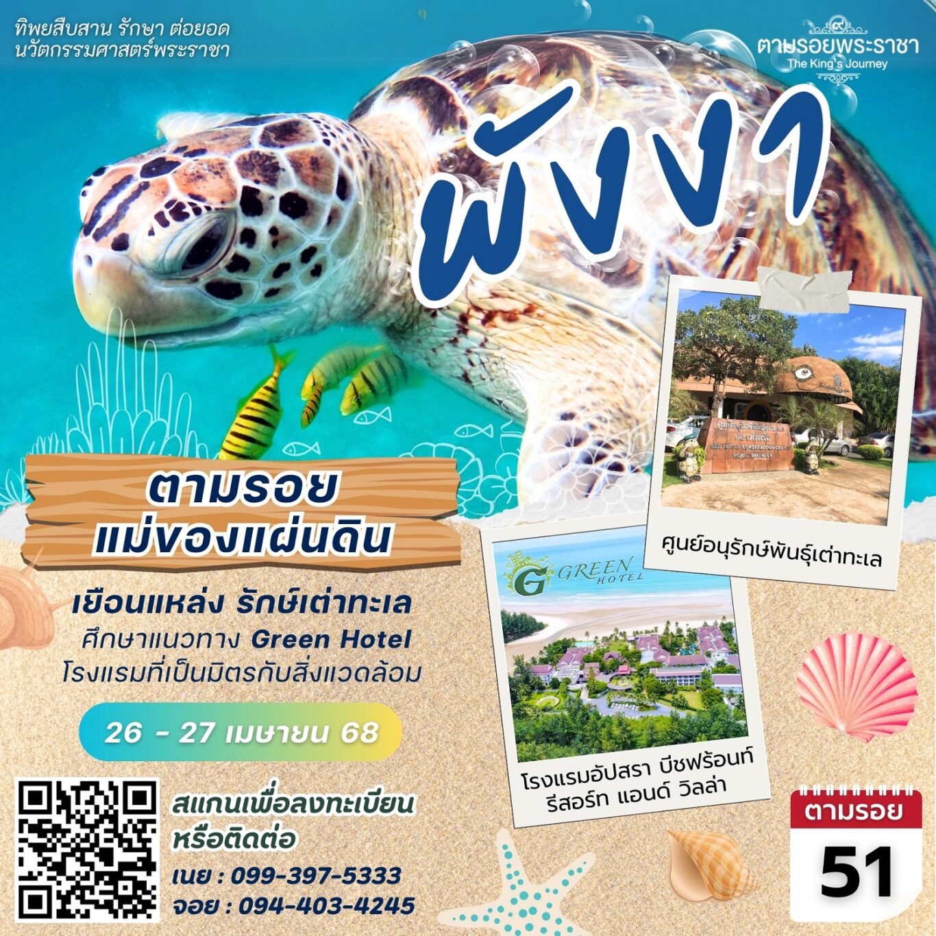 เชิญครู-อาจารย์ทั่วประเทศ และผู้ที่สนใจตามรอยแม่ของแผ่นดิน เยือนแหล่งเรียนรู้ รักษ์เต่าทะเล Green Hotel “ต้นแบบโรงแรมที่เป็นมิตรกับสิ่งแวดล้อม”