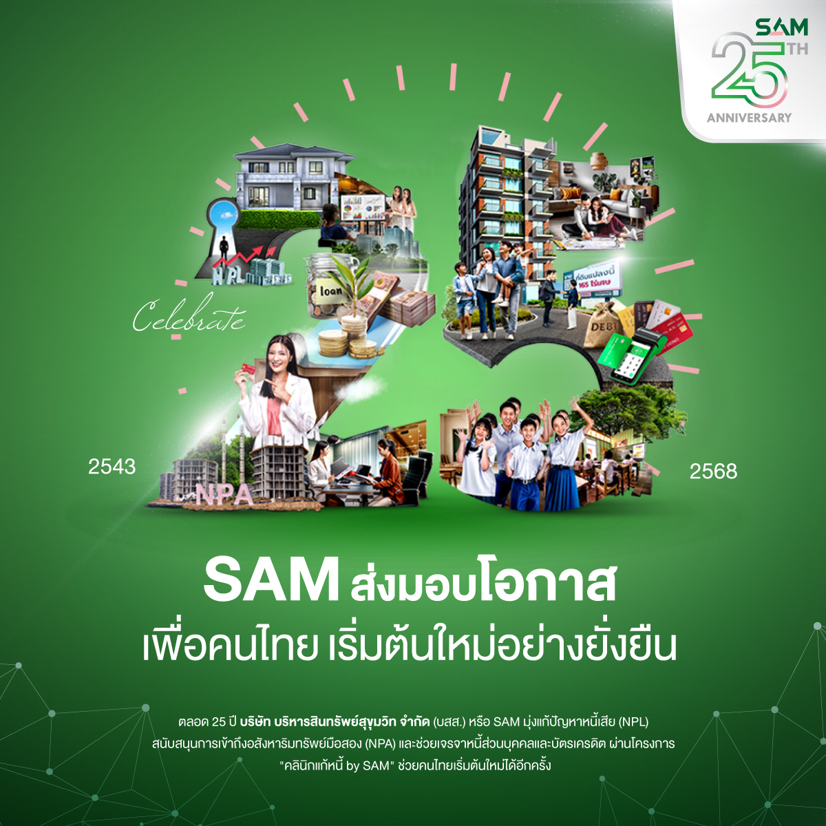 ดังนั้น ในวาระครบรอบ 25 ปีเดือนเมษายน 2568 นี้ SAM จึงเดินหน้าออกโครงการและกิจกรรมต่างๆ ที่น่าสนใจตลอดปี เริ่มจาก 2 มาตรการพิเศษที่ขยายและเพิ่มความช่วยเหลือลูกค้าปรับโครงสร้างหนี้ NPL ได้ครอบคลุมลูกค้าทุกประเภทสินเชื่อมากขึ้น ได้แก่ มาตรการ “ปรับหนี้มีสุข ผ่อนดีมีลด” และ “SAM จูงใจ ชำระไวในเงื่อนไขสัญญายอม”