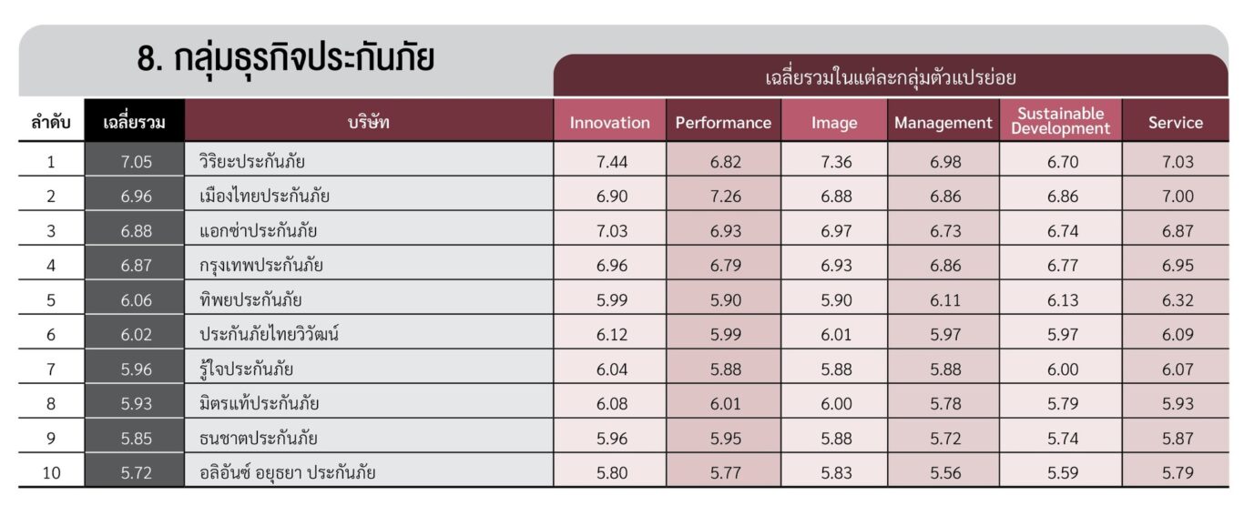 อีกทั้ง บริษัทฯ ยังได้รับการยอมรับว่าเป็นบริษัทในกลุ่มธุรกิจประกันภัยที่มีความน่าเชื่อถือสูงสุด จากผลสำรวจ “2024-2025 Thailand’s Most Admired Company” ด้วยผลคะแนน 7.05 โดยได้รับคะแนนสูงสุด 4 ปัจจัย ได้แก่ Innovation, Corporate Image, Management และ Excellence Service