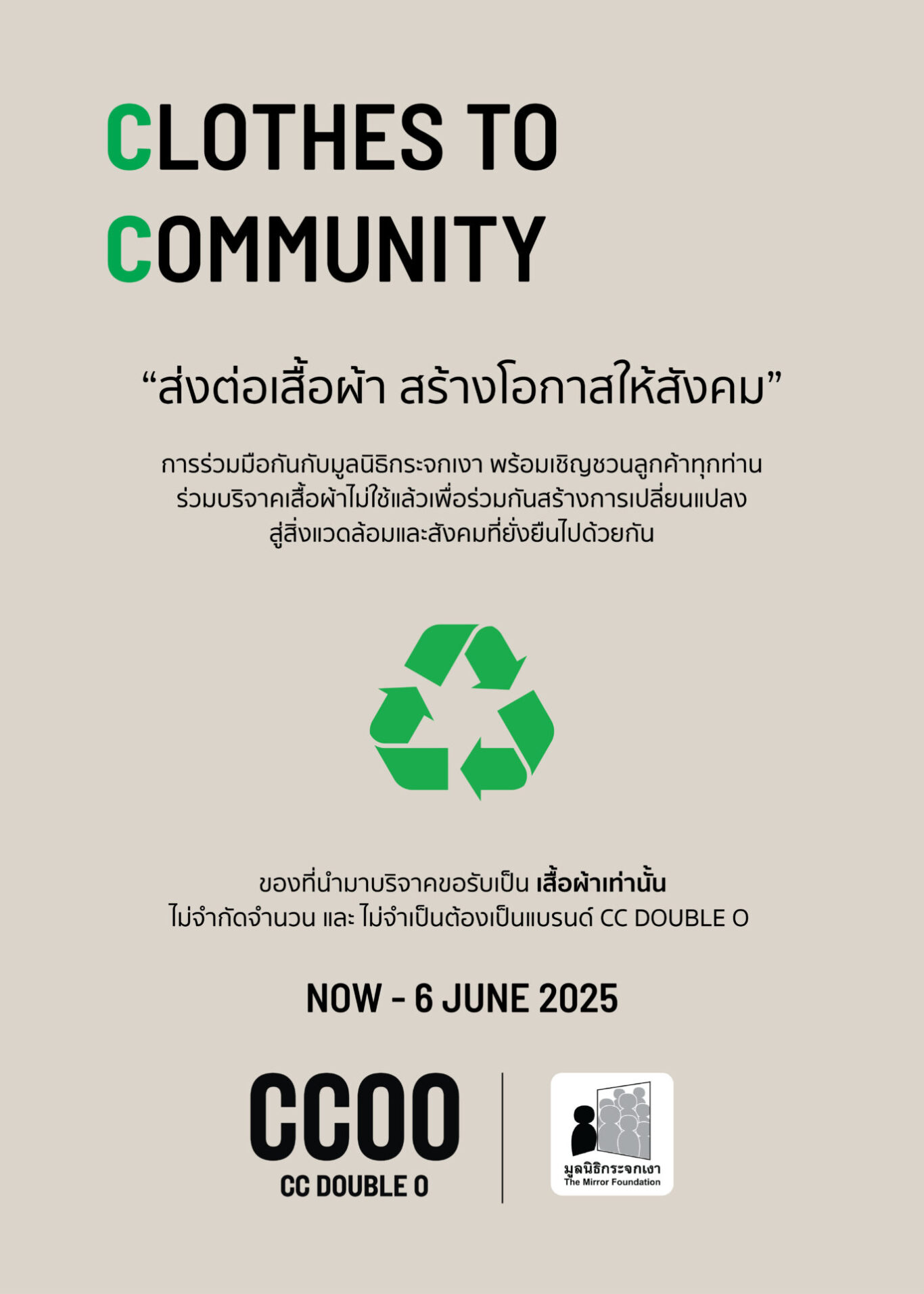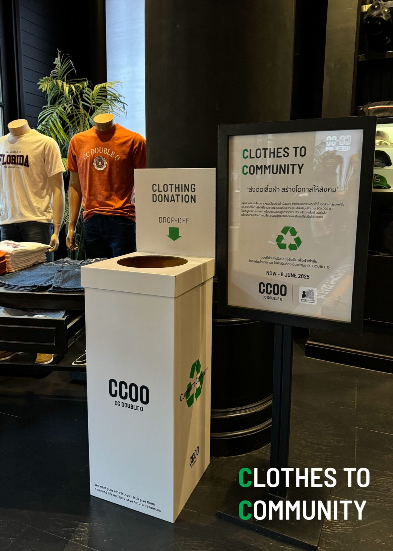 CC DOUBLE O ชวนบริจาคเสื้อผ้ากับแคมเปญ “CLOTHES TO COMMUNITY” ร่วมรักษาสิ่งแวดล้อมและสร้างสังคมที่ยั่งยืนไปด้วยกัน