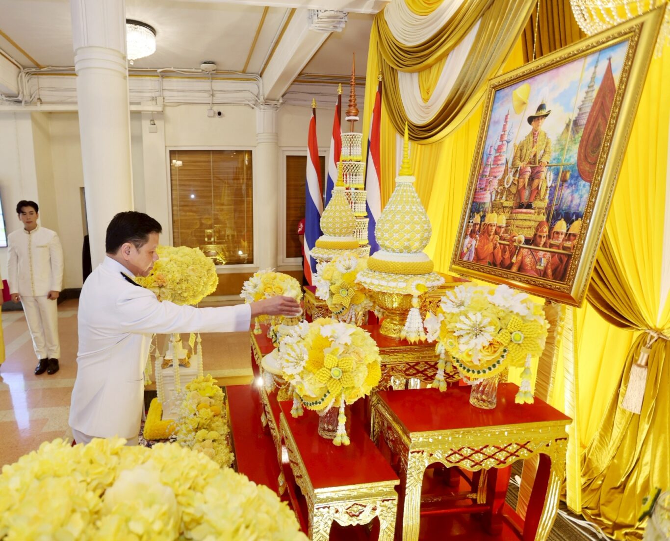 นายวิทัย รัตนากร ผู้อำนวยการธนาคารออมสิน พร้อมคณะผู้บริหาร ร่วมพิธีถวายพระพรชัยมงคล เบื้องหน้าพระบรมฉายาสาทิสลักษณ์ พระบาทสมเด็จพระปรเมนทรรามาธิบดีศรีสินทรมหาวชิราลงกรณ พระวชิรเกล้าเจ้าอยู่หัว เนื่องในวันฉัตรมงคล วันที่ 4 พฤษภาคม 2568 เพื่อเป็นการแสดงออกถึงความจงรักภักดี และสำนึกในพระมหากรุณาธิคุณ ณ ธนาคารออมสิน สำนักงานใหญ่ เมื่อวันที่ 2 พฤษภาคม 2568