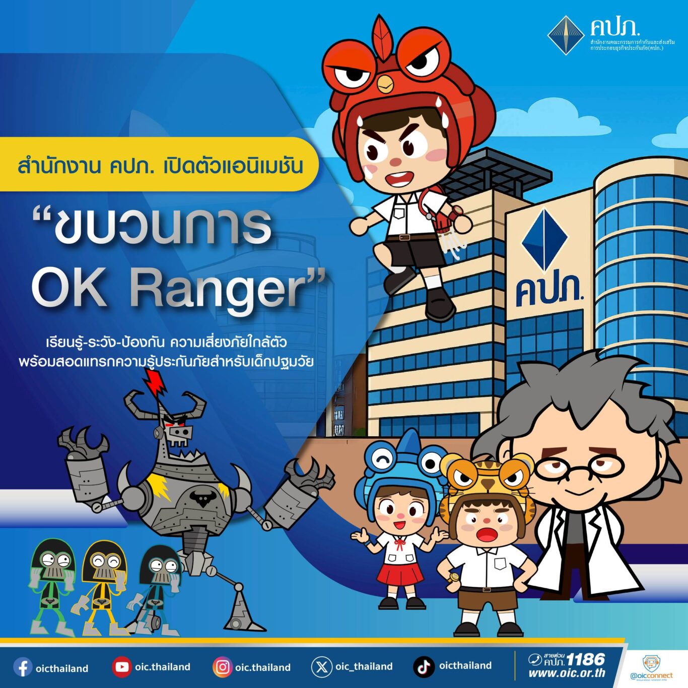 กลุ่มงานสื่อสารองค์กรสำนักงานคณะกรรมการกำกับและส่งเสริมการประกอบธุรกิจประกันภัย (สำนักงาน คปภ.) เดินหน้าสร้างความเข้าใจเรื่องการประกันภัยให้กับเยาวชนไทย โดยเฉพาะในช่วงวัยเริ่มต้น ด้วยการเปิดตัวสื่อการ์ตูนแอนิเมชันสร้างสรรค์สำหรับกลุ่มเด็กปฐมวัยในชื่อ“ขบวนการ OK Ranger” ซึ่งมีเนื้อหาครอบคลุมพื้นฐานความรู้ด้านการประกันภัยเบื้องต้น นำเสนอผ่านเรื่องราวที่สนุกสนานน่าติดตาม เข้าใจง่าย และเหมาะสมกับพัฒนาการของเด็กปฐมวัยแอนิเมชันชุด “ขบวนการ OK Ranger” จำนวนทั้งสิ้น 15 ตอน เป็นการต่อยอดจากหนังสือภาพประกอบที่ สำนักงาน คปภ.จัดทำขึ้นในปีที่ผ่านมา โดยนำเนื้อหาในเล่มหนังสือภาพประกอบมาพัฒนาให้เป็นแอนิเมชันที่ช่วยให้เด็ก ๆ ได้เรียนรู้เกี่ยวกับการระวังภัยใกล้ตัว การบริหารความเสี่ยงเบื้องต้น และความรู้พื้นฐานเกี่ยวกับการประกันภัย เช่น ความหมายของการประกันภัยในภาษาที่เข้าใจง่ายรวมถึงประเภทของการประกันภัยที่เกี่ยวข้องกับชีวิตประจำวัน