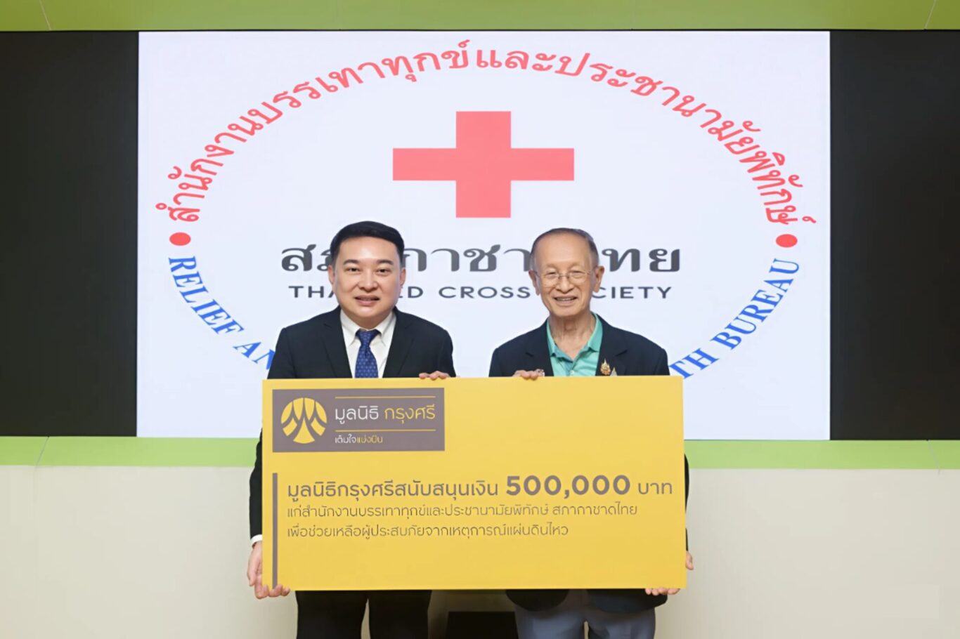 กรุงเทพฯ (9 พฤษภาคม 2568) – มูลนิธิกรุงศรี โดย นายพูนสิทธิ์ ว่องธวัชชัย (ซ้าย) ผู้ช่วยเลขานุการ มูลนิธิกรุงศรี มอบเงินสนับสนุนจำนวน 500,000 บาท แก่ พลโทนายแพทย์ อำนาจ บาลี (ขวา) ผู้อำนวยการสำนักงานบรรเทาทุกข์และประชานามัยพิทักษ์ สภากาชาดไทย เพื่อร่วมสนับสนุนภารกิจด้านการช่วยเหลือและฟื้นฟูผู้ประสบภัยพิบัติทั่วประเทศ การสนับสนุนครั้งนี้เป็นส่วนหนึ่งของพันธกิจหลักของมูลนิธิกรุงศรีในการให้ความช่วยเหลือผู้ประสบภัยพิบัติอย่างต่อเนื่องและครอบคลุม เพื่อยกระดับคุณภาพชีวิตและสร้างความเข้มแข็งให้แก่สังคมอย่างยั่งยืน