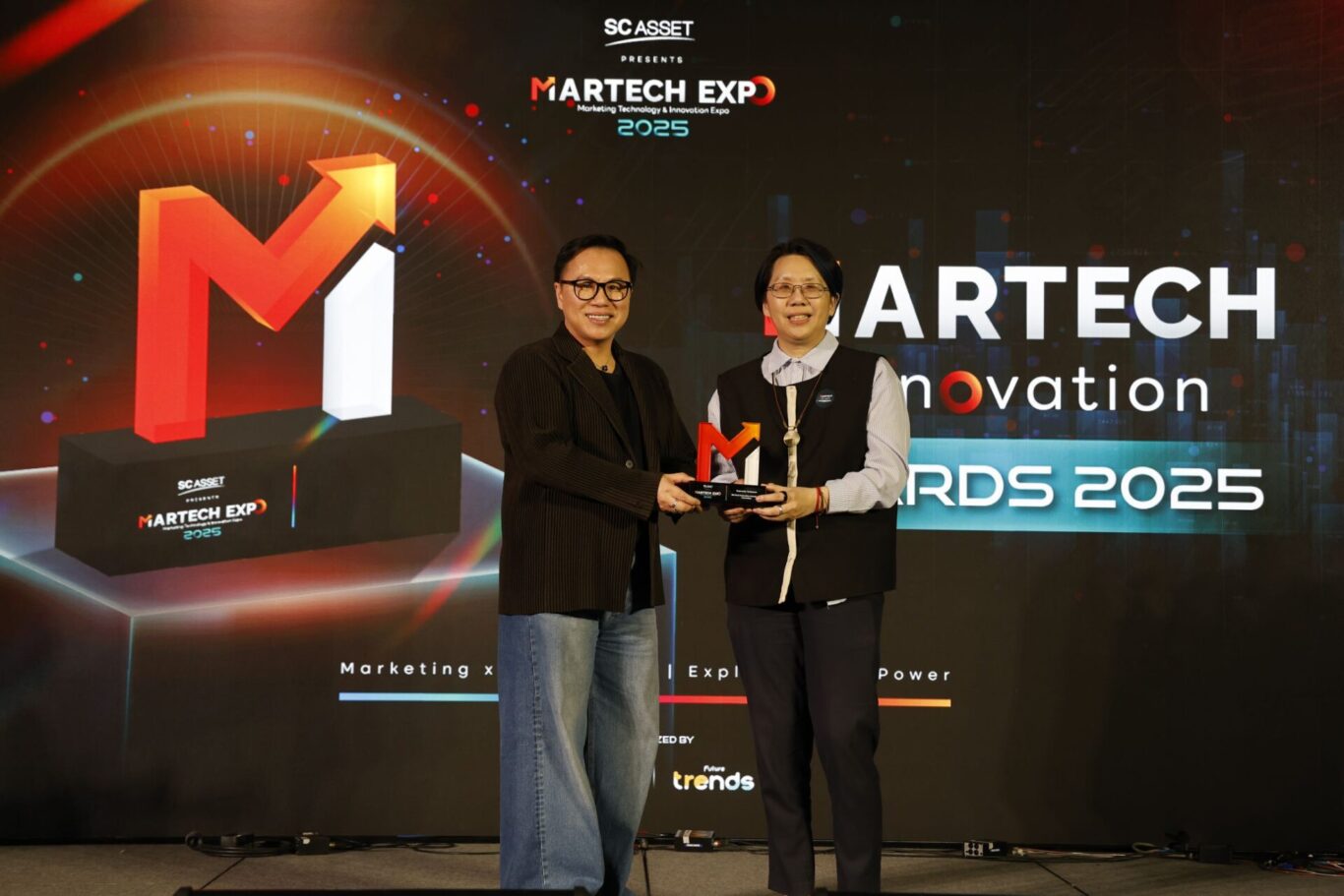หนึ่งในกิจกรรมไฮไลท์ภายในงาน SC ASSET Presents MARTECH EXPO 2025: EXPLORING THE POWER มหกรรมเทคโนโลยีและนวัตกรรมการตลาดครั้งใหญ่ที่สุดแห่งปี เมื่อเดือนมีนาคม ที่ผ่านมา ซึ่ง Future Trends และ JITTIPONG Loespradit ร่วมกับ SC ASSET จัดขึ้น ณ ภิรัช ฮอลล์ ไบเทคบุรี คือ การประกาศผลรางวัล MarTech Innovation Awards 2025 ที่จัดขึ้น เป็นครั้งแรก เพื่อยกย่องผู้สร้างสรรค์และพัฒนานวัตกรรมเครื่องมือการตลาดที่สร้างการเปลี่ยนแปลง รวมถึงเป็นต้นแบบความสำเร็จในการผสานการใช้งาน Technology และ Innovation เข้ากับกลยุทธ์ทางการตลาดได้อย่างเต็มศักยภาพ เพื่อให้ภาคธุรกิจได้เล็งเห็นถึงประโยชน์ของเทคโนโลยีการตลาด ซึ่งเป็นเครื่องมือสำคัญของการแข่งขันในโลกธุรกิจทั้งในวันนี้และในอนาคต