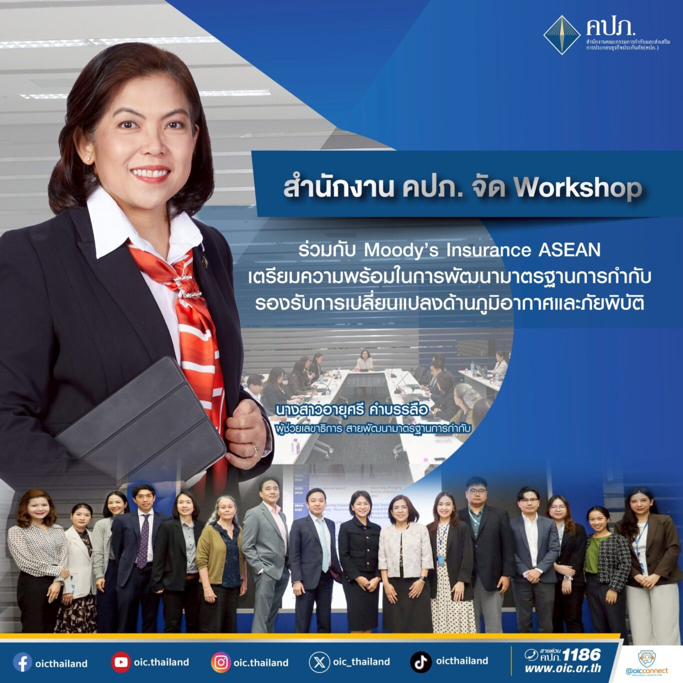 “การจัด Workshop ร่วมกันระหว่าง สำนักงาน คปภ. และ Moody’s Insurance ASEAN ในครั้งนี้ นอกจากจะเป็นเวทีสำคัญในการแบ่งปันองค์ความรู้ให้กับผู้เข้าร่วมแล้ว ยังเป็นการสร้างความร่วมมือระดับหน่วยงานในระยะยาว เพื่อประสานความร่วมมือกับทุกภาคส่วนประกันภัย ซึ่งอยู่ในจุดที่ต้องเตรียมความพร้อมเพื่อรับมือกับภัยความเสี่ยงที่มีความซับซ้อนมากขึ้น อันจะช่วยยกระดับมาตรฐานในการคาดการณ์ความเสี่ยงให้ดีขึ้น และจะช่วยสร้างอุตสาหกรรมประกันภัยไทยให้มีความยืดหยุ่น และแข็งแกร่งมากขึ้น เพื่อให้สามารถร่วมกันจัดการกับความท้าทายในอนาคต” ผู้ช่วยเลขาธิการ สายพัฒนามาตรฐานการกำกับ กล่าวในตอนท้าย