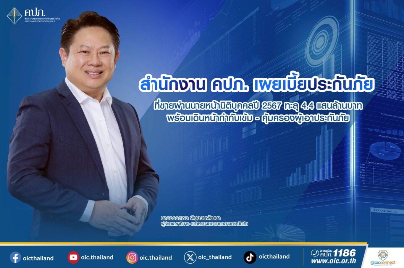 สำนักงาน คปภ. เผยเบี้ยประกันภัยที่ขายผ่านนายหน้านิติบุคคลปี 2567 ทะลุ 4.4 แสนล้านบาท พร้อมเดินหน้ากำกับเข้ม – คุ้มครองผู้เอาประกันภัย