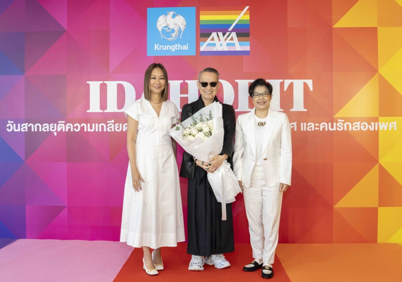 บมจ.กรุงไทย-แอกซ่า ประกันชีวิต นำโดย นางสาวสรัสวดี คุปตะพงศ์ ประธานเจ้าหน้าที่บริหาร ฝ่ายทรัพยากรบุคคล (ซ้าย) และ นางสาวบุปผาวดี โอวรารินท์ ประธานเจ้าหน้าที่บริหาร ฝ่ายการตลาด (ขวา) ร่วมรณรงค์วันสากลยุติความเกลียดกลัวคนรักเพศเดียวกัน คนรักสองเพศ คนหลากหลายทางเพศ และคนข้ามเพศ (IDAHOBIT) เพื่อเป็นส่วนหนึ่งในการให้ความรู้ เสริมสร้างสังคมแห่งความเท่าเทียมที่ทุกคนต่างเคารพซึ่งกันและกัน