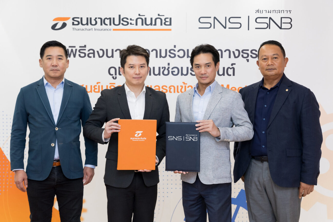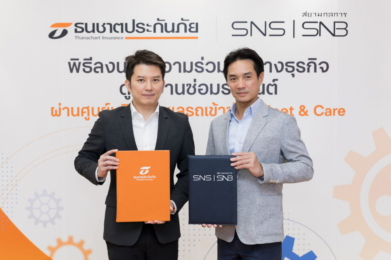 โดย นายทีฆภัค ศรียุกต์วงศ์ รองประธานเจ้าหน้าที่บริหาร บริษัท ธนชาตประกันภัย จำกัด (มหาชน) และ นายเกริก เกียรติเฟื่องฟู กรรมการผู้จัดการ บริษัท สยามนิสสัน บอดี้ จำกัด ร่วมลงนามบันทึกความร่วมมือในโครงการ “ดูแลงานซ่อมรถยนต์ผ่านศูนย์บริการดูแลรถเข้าซ่อม Meet & Care” ณ ธนชาตประกันภัย สำนักงานใหญ่