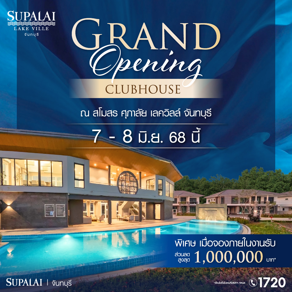 บมจ. ศุภาลัย เตรียมจัดงาน Grand Opening ศุภาลัย เลควิลล์ จันทบุรี เปิดประสบการณ์ชีวิตติดเลค กับบ้านหลังใหม่ที่คุณรอคอย กับโครงการบ้านเดี่ยวดีไซน์ทันสมัย ที่ผสานความสงบของธรรมชาติเข้ากับการใช้ชีวิตเมืองได้อย่างลงตัว ในวันที่ 7-8 มิถุนายน นี้ พิเศษเฉพาะจองภายในงาน! รับส่วนลดสูงสุด 1,000,000 บาท* เมื่อจองบ้านภายในงานเท่านั้น