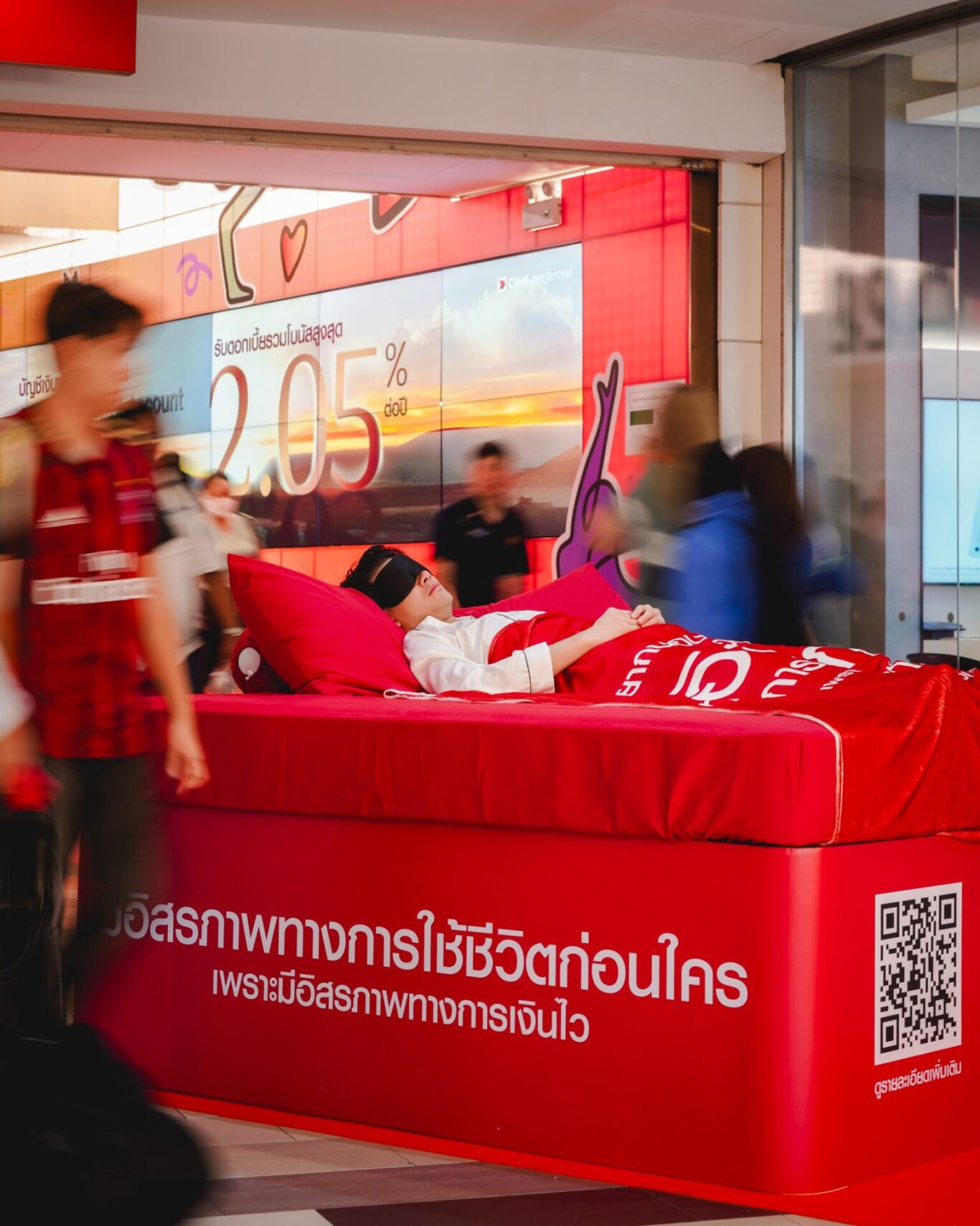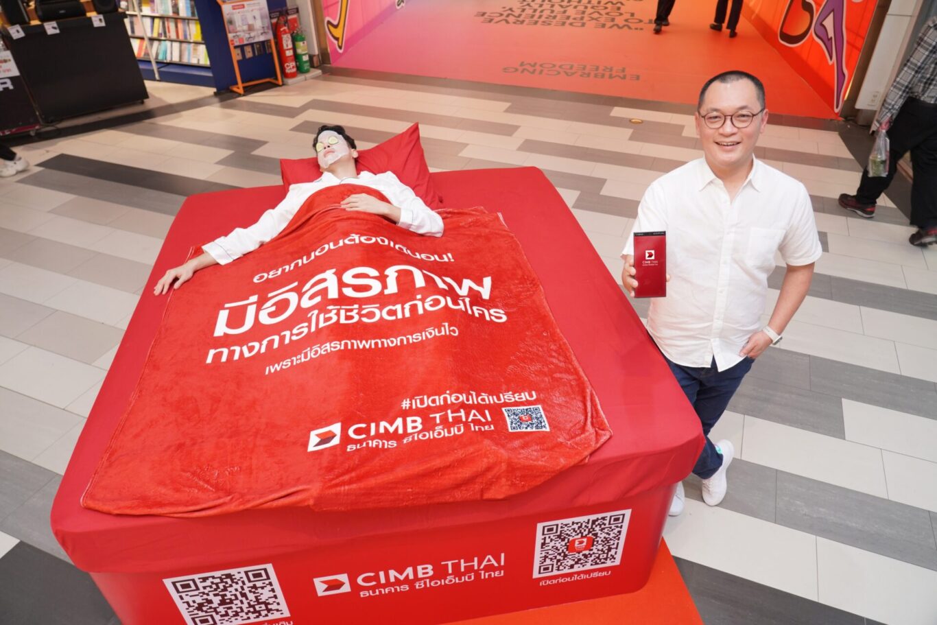 ปัจจุบัน กว่า 90% ของธุรกรรมจากลูกค้ารายย่อย ดำเนินการผ่านมือถือ และธุรกรรมเติบโตเฉลี่ย 75% ต่อปี สะท้อนการเป็นส่วนหนึ่งของชีวิตประจำวันลูกค้า และเพื่อให้ลูกค้าใช้แอปธนาคารทำให้เรื่องการเงินซับซ้อนกลายเป็นเรื่องง่าย ธนาคารจึงเปิดตัวแคมเปญสร้างสรรค์ใหม่ล่าสุด ถ่ายทอดผ่านหนังสั้น 3 เรื่อง ที่บอกเล่ามุมมองของ First Jobber, Manager และเจ้าของธุรกิจ ที่ต่างพบเจอความหมายของอิสรภาพในแบบของตนเอง ไม่ว่าจะเป็นการได้นอนเต็มที่ ได้เล่นสนุก หรือได้ออกเดินทาง ทุกอย่างเป็นไปได้ด้วยแอป CIMB THAI หนึ่งในไฮไลต์ของแคมเปญคือ การติดตั้งเตียงนอนจริงไว้กลางศูนย์การค้า พร้อมข้อความ “อยากนอน ต้องได้นอน” เพื่อสะท้อนแนวคิดว่า แอปธนาคารที่ใช่ ไม่ได้ดูแลแค่เรื่องเงิน แต่ดูแลเรื่องชีวิตของคุณด้วย เป็นแอปที่ทุกคนควรมีติดมือถือเอาไว้