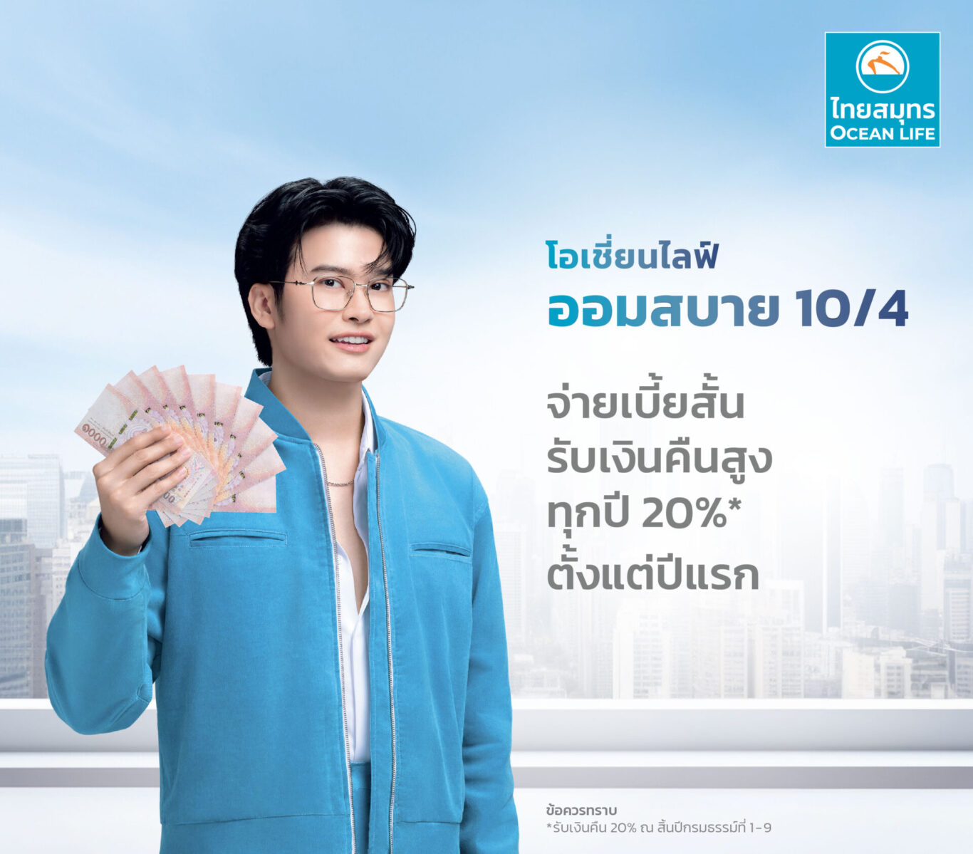 OCEAN LIFE ไทยสมุทร ส่งตัวช่วยลดหย่อนภาษีสุดคุ้ม “โอเชี่ยนไลฟ์ ออมสบาย 10/4” ที่ให้มากกว่าความคุ้มครอง พร้อมรับเงินคืนสูง 20% ตั้งแต่ปีแรก!