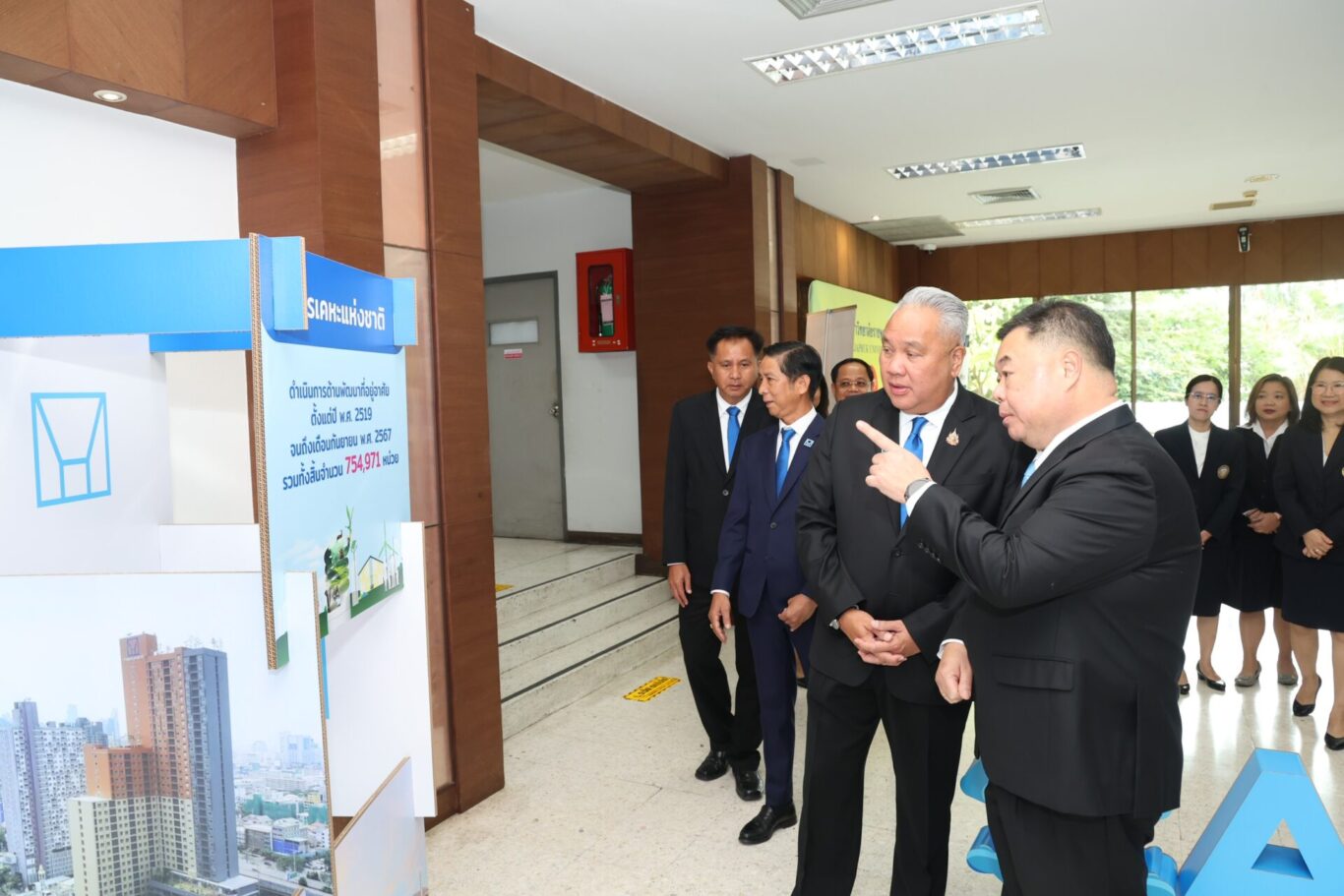 พร้อมด้วยคณะกรรมการการเคหะแห่งชาติ และ ผศ.ดร.นพดล พันธุ์พานิช กรรมการผู้ทรงคุณวุฒิด้านความรับผิดชอบต่อสังคม ผู้มีส่วนได้ส่วนเสียและลูกค้า การเคหะแห่งชาติ รวมถึงผู้บริหารของทั้งสองหน่วยงานเข้าร่วมพิธีดังกล่าว ณ ห้องประชุมวทัญญู ณ ถลาง การเคหะแห่งชาติ สำนักงานใหญ่ แขวงคลองจั่น เขตบางกะปิ กรุงเทพฯ