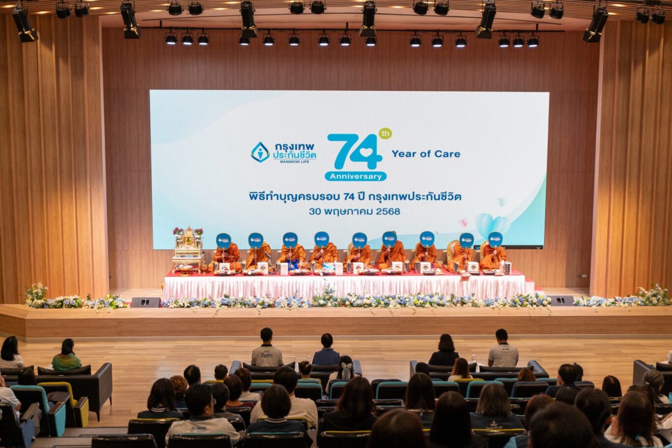 นายโชน โสภณพนิช กรรมการผู้จัดการใหญ่และประธานเจ้าหน้าที่บริหาร บริษัท กรุงเทพประกันชีวิต จำกัด (มหาชน) พร้อมด้วยกรรมการ ผู้บริหาร พนักงาน ตัวแทนประกันชีวิต และที่ปรึกษาทางการเงิน ร่วมประกอบพิธีทำบุญตักบาตรข้าวสารอาหารแห้ง สิ่งของและปัจจัย รวมทั้งถวายภัตตาหารคณะสงฆ์ 9 รูป เพื่อความเป็นสิริมงคลเนื่องในโอกาสครบรอบ 74 ปี ของการดำเนินธุรกิจ