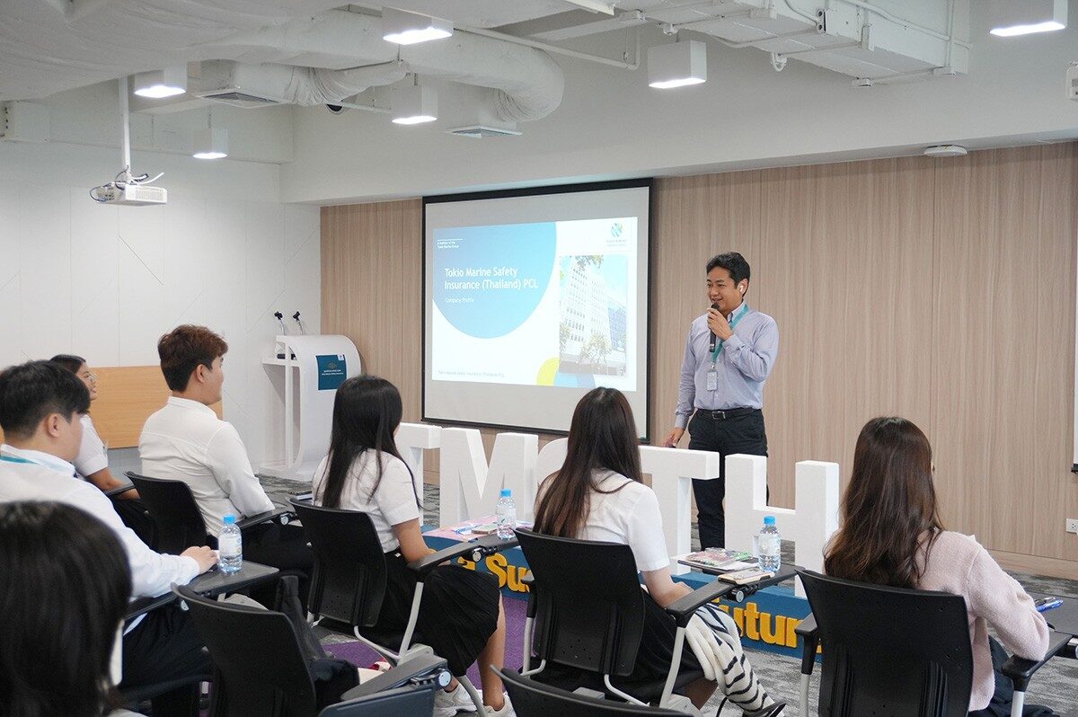บริษัท คุ้มภัยโตเกียวมารีนประกันภัย (ประเทศไทย) จำกัด (มหาชน) จัดการปฐมนิเทศนักศึกษาฝึกงานประจำปี 2568 จากโครงการความร่วมมือกับมหาวิทยาลัยชั้นนำ TMSTH UNI TALENTS 2025 เปิดโอกาสทางการเรียนรู้ในสภาพแวดล้อมจริงของธุรกิจประกันภัยโดยมีคุณโนบุฟูมิ ยาซุเอะ ประธานเจ้าหน้าที่บริหาร ให้การต้อนรับ